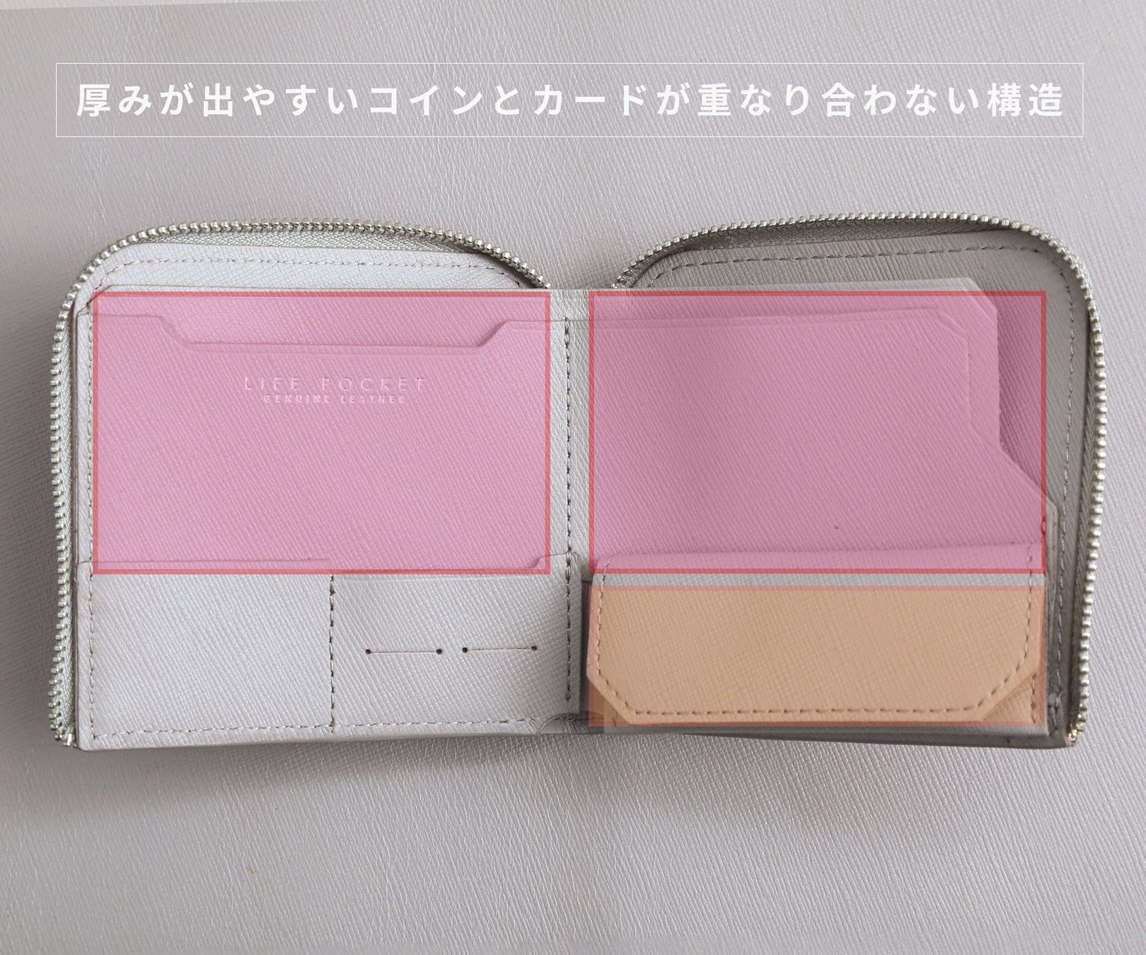 紙幣を折って収納する事や小銭入れの出し入れがしにくい設計ではなく、その矛盾としっかり向きあい、お財布の形や定義から見直しリデザインする事で、使いやすく長財布からの移行も安心できる収納デザインを追求しております。