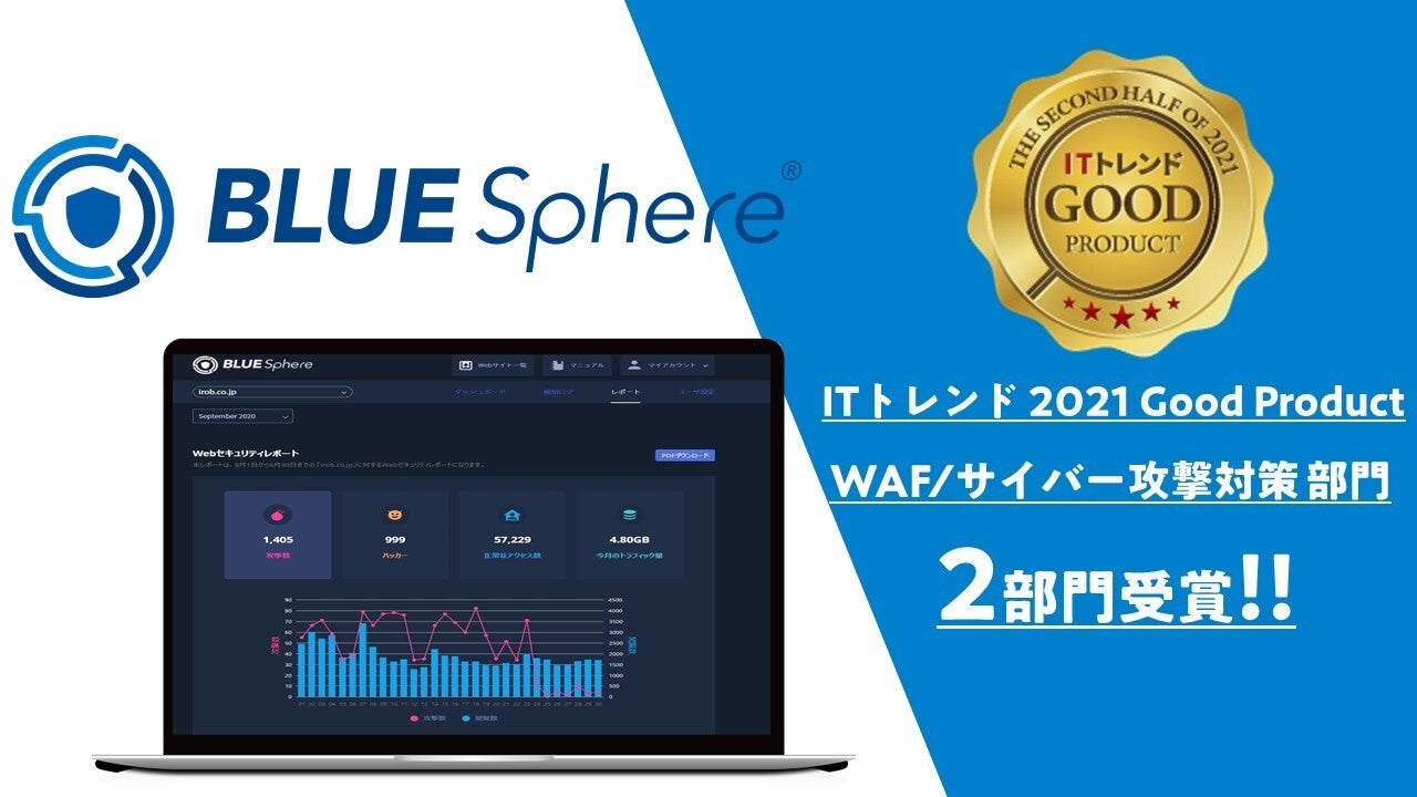 株式会社アイロバ(本社:東京都千代田区、代表取締役: 小林 直樹、以下「アイロバ」) が提供する「BLUE Sphere」は、株式会社Innovation & Co. (本社:東京都渋谷区、代表取締役: 遠藤俊一、以下「イノベーション」) が運営するIT製品の比較・資料請求サイト「ITトレンド」より「WAF部門」、「サイバー攻撃対策部門」の2部門において「ITトレンド Good Productバッジ」を受賞したことお知らせします。