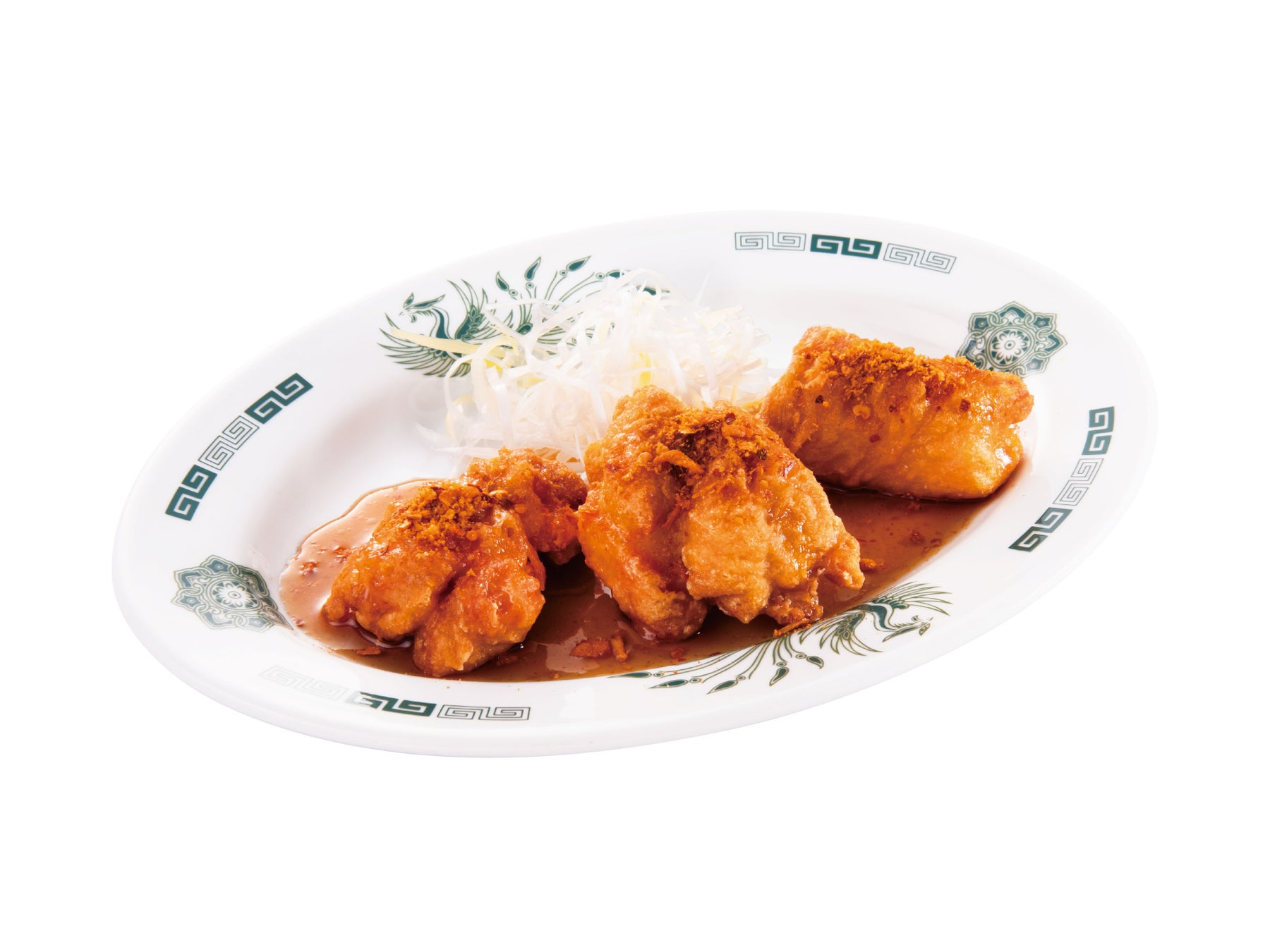「ドラゴンチキン」は、お酒と相性抜群の唐揚げに甘辛ソースと10種類以上のスパイスをブレンドした辛スパイスを合わせました。甘辛ソースと相性のよい細切りネギと一緒に食べると、口の中で香りが広がります。