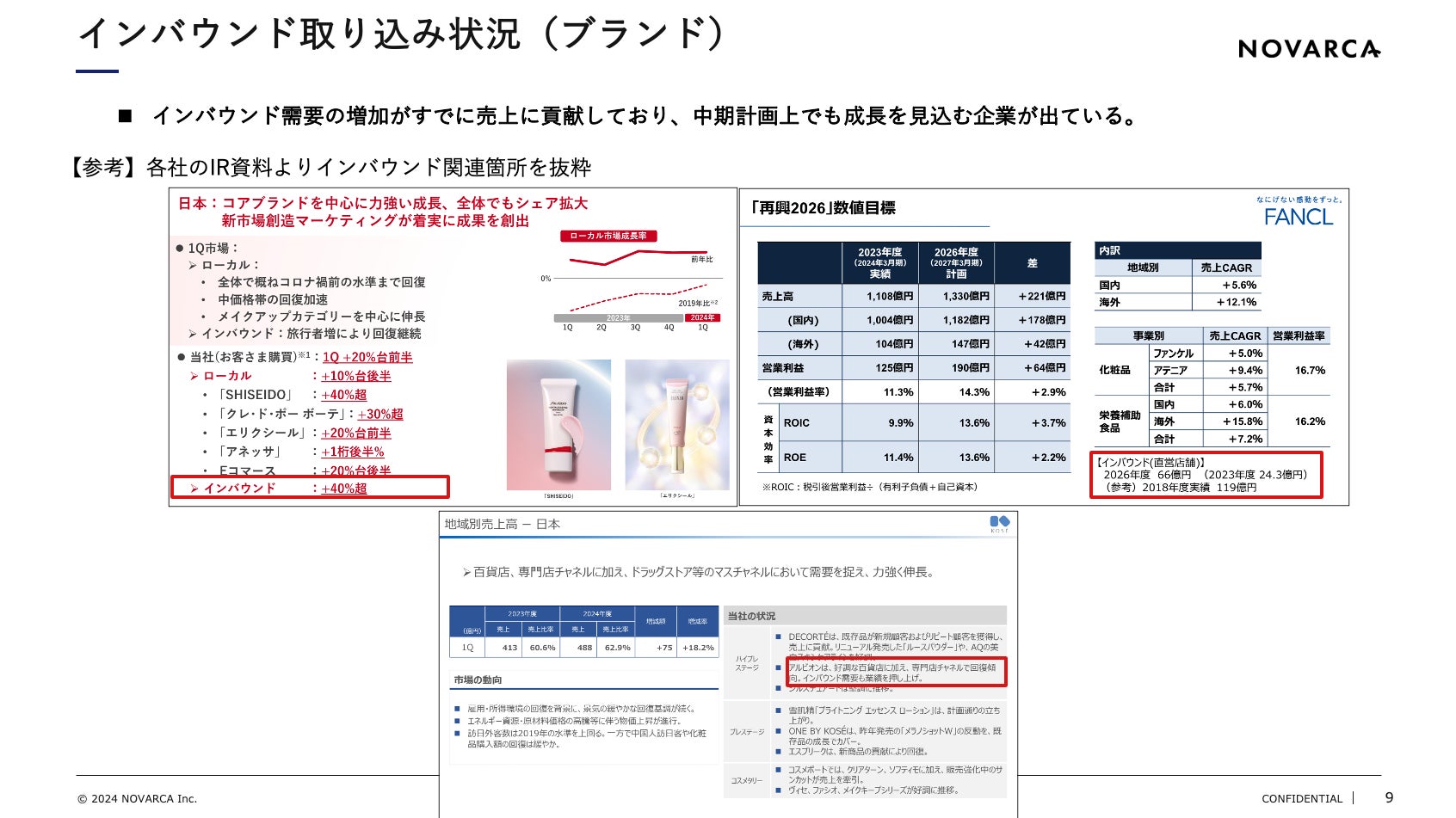 ・インバウンド需要が売上に大きく反映される企業が増え、次年度以降の計画内でもさらなる市場の成長を含んでいる企業が増加