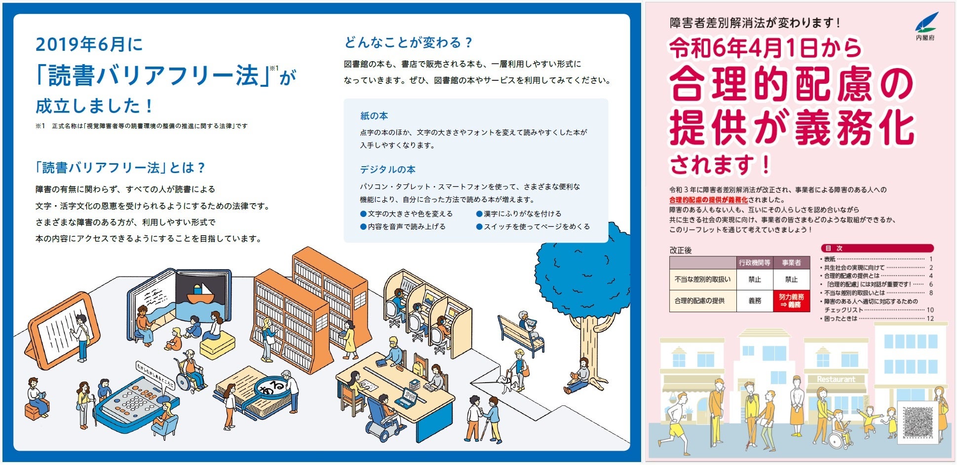 2019年『読書バリアフリー法(視覚障害者等の読書環境の整備の推進に関する法律)』が施行されました。また、2024年4月より『障害者差別解消法』改正版が施行されます。改正により、従来国や自治体に求められた「合理的配慮提供の義務」が、民間企業においても同様に求められることになります。