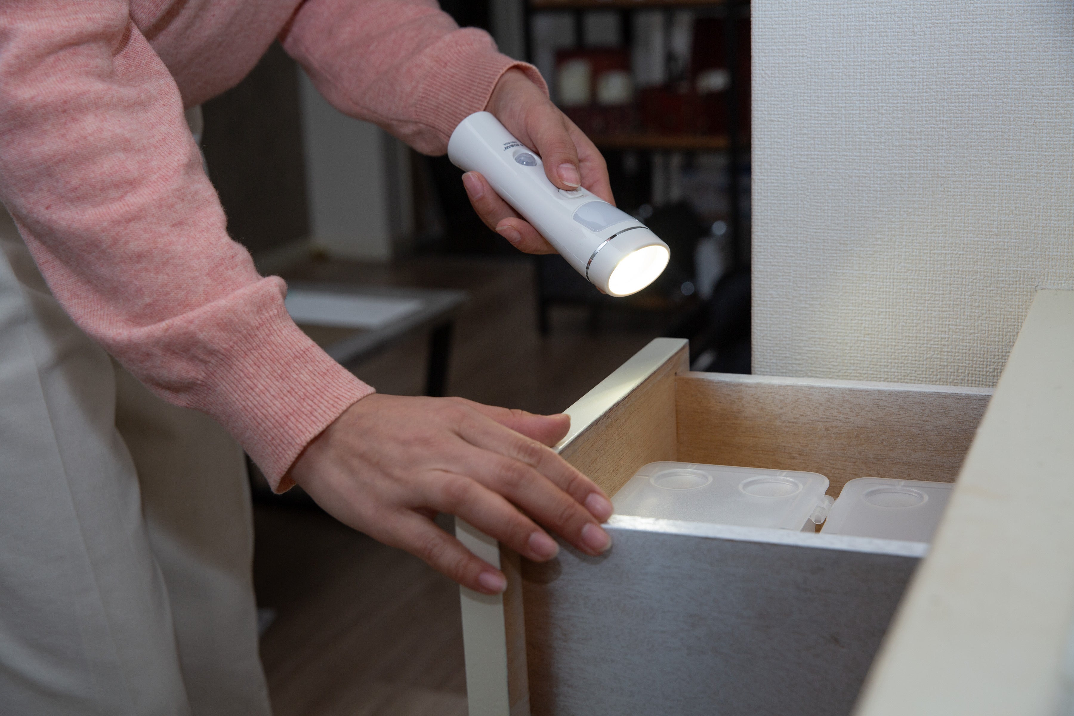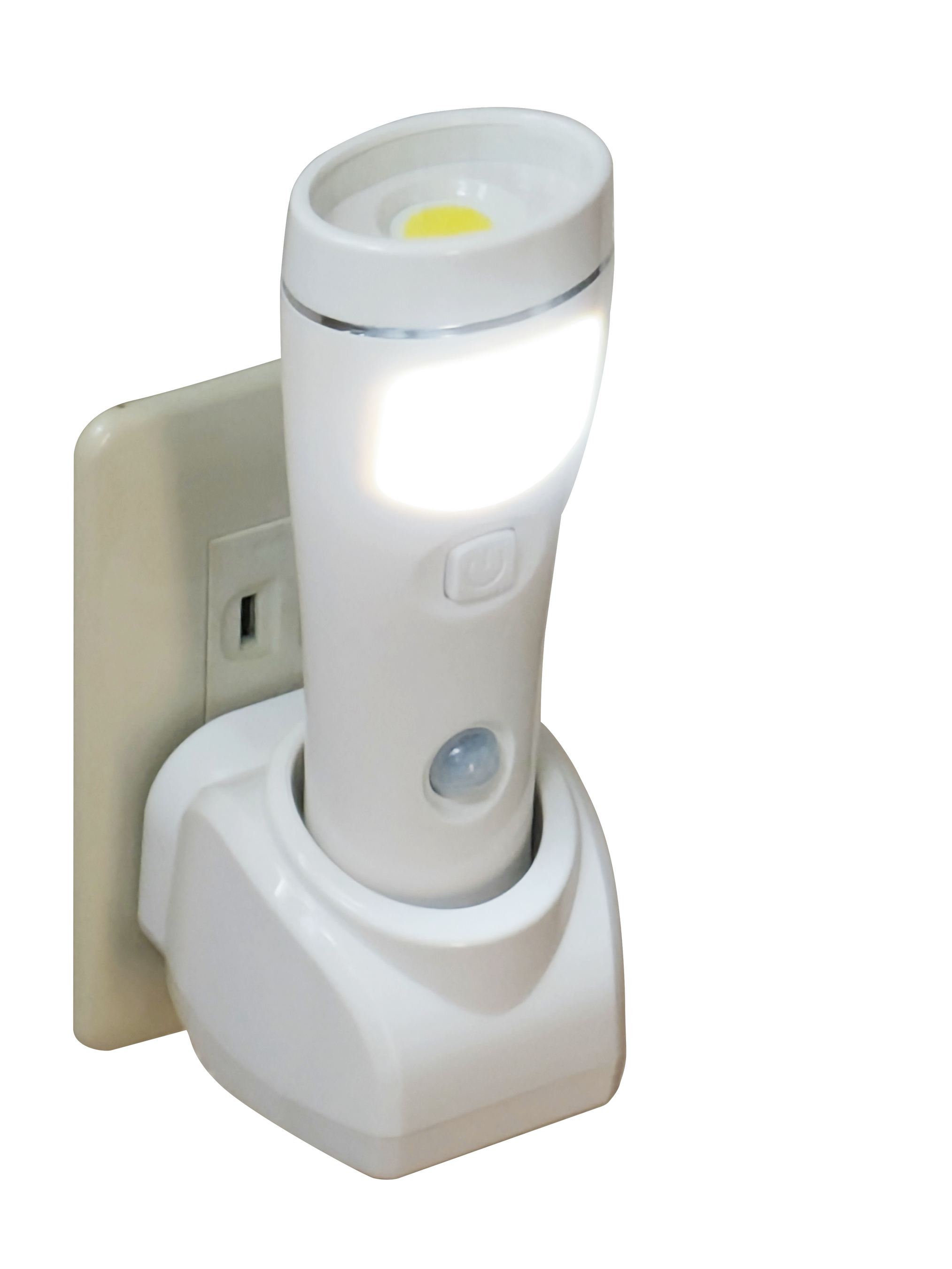 コンセント直挿しの充電ホルダーに取り外し可能なライトが一体になったマルチセンサーライト。人感センサーや常夜灯モードで玄関や廊下をやさしく照らし、停電時には自動点灯であなたと家族を守ります。