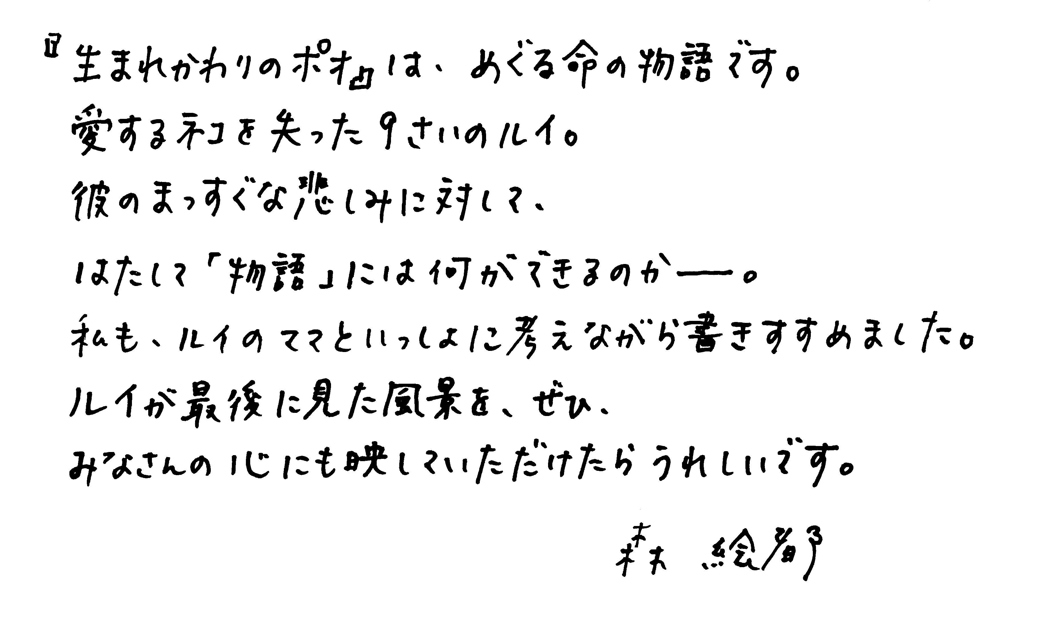 直木賞作家・森絵都さんが贈る渾身の感動作! 転生の物語『生まれかわりのポオ』。6月12日(日)紀伊國屋書店 新宿本店にてサイン会も開催!!