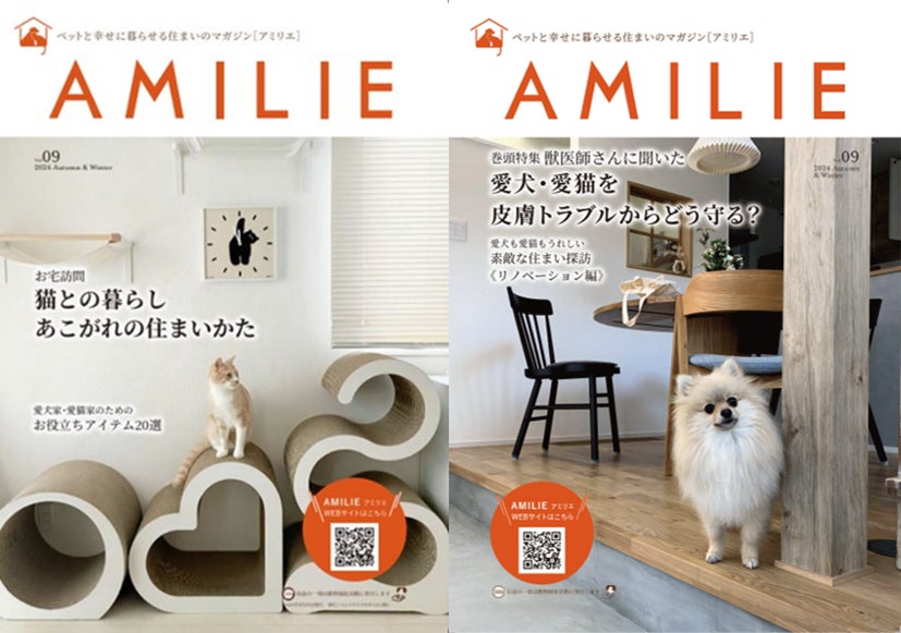 「愛犬家住宅&愛猫家住宅コーディネーター」の資格講座を運営するペットライフスタイル株式会社(本社:東京都港区、代表:中嶋宏一)は、ペットと幸せに暮らせる住まいのマガジン「AMILIE(アミリエ)」の最新号となるVol.09を2024年9月30日(月)に発刊いたしました。