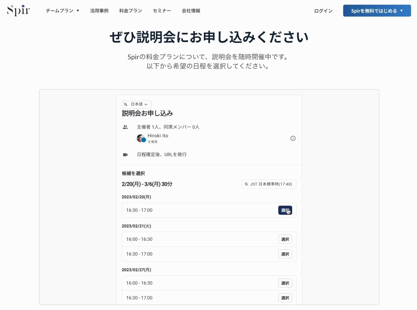日程調整ツールのSpir(スピア)、有料機能を3名まで無料で提供開始