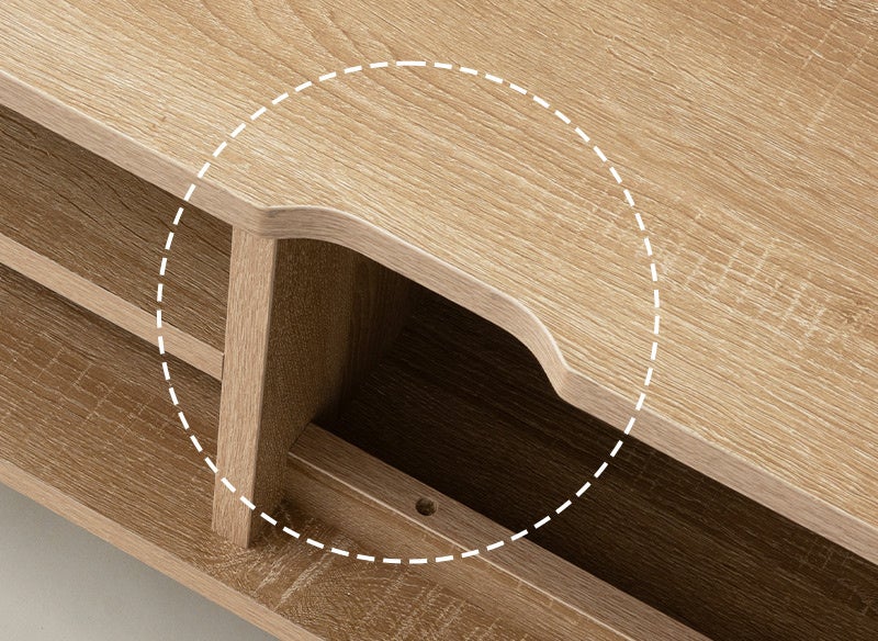 天板には切り欠き加工があるので、テレビのコードを背面に通すことができます。