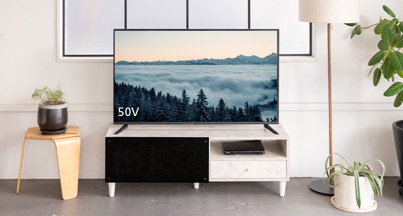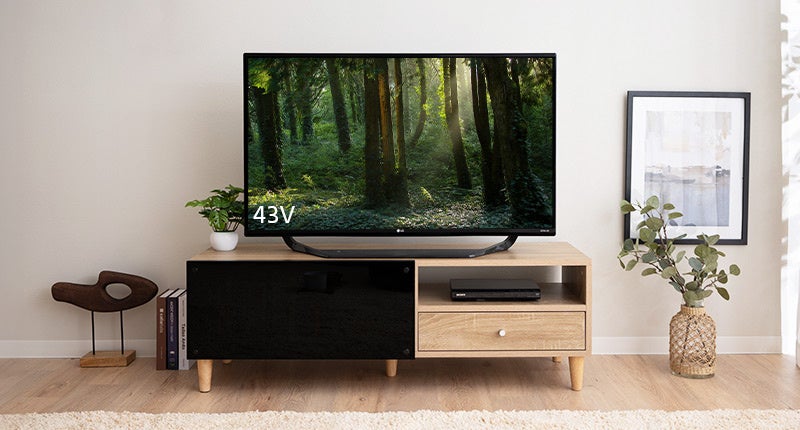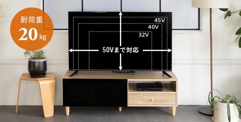 50Vまでのテレビに対応しています。ボードの高さは、一般的なソファに座った際にちょうどよい高さになるように設計しています。