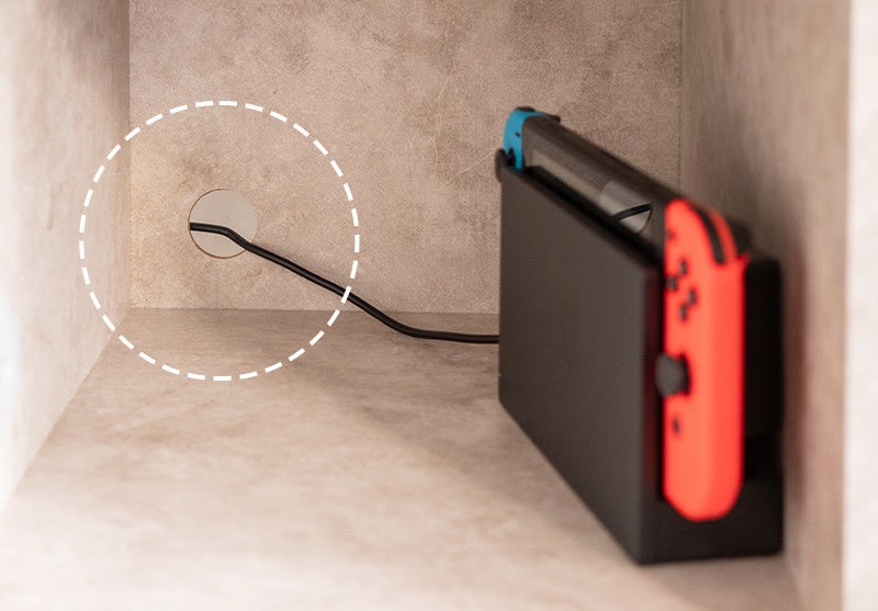 フラップ扉内の背面パネルにも配線穴を付け、テレビ周りでごちゃつきがちなコード類も絡まりにくく見た目もすっきり。