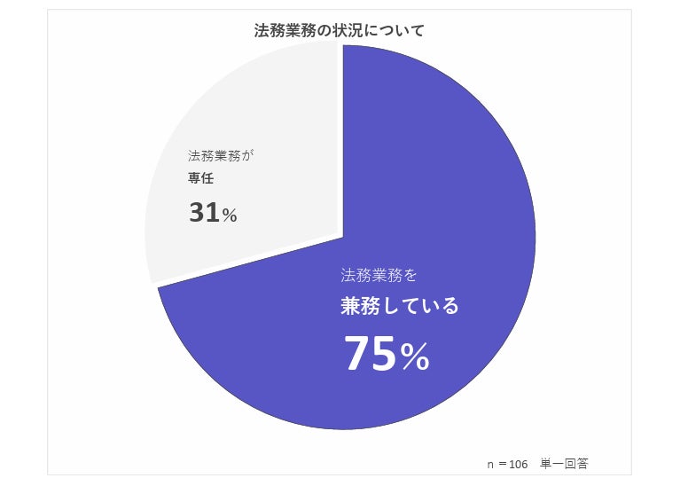 法務業務以外にも、経理や労務などを兼任しているか質問したところ、7割以上の方が兼務している結果となりました。