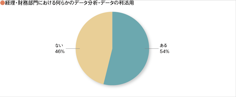 経理・財務部門のDXにおいては、 プロセスの効率化・自動化により、 削減された工数を事業や経営に資するためのFP&A(ファイナンシャル・プランニング&アナリシス)機能にシフトしていくことが求められると言われています。 こうした中、 経理・財務部門において何らかのデータの分析や活用に取り組んでいる企業は回答者の54%でした。