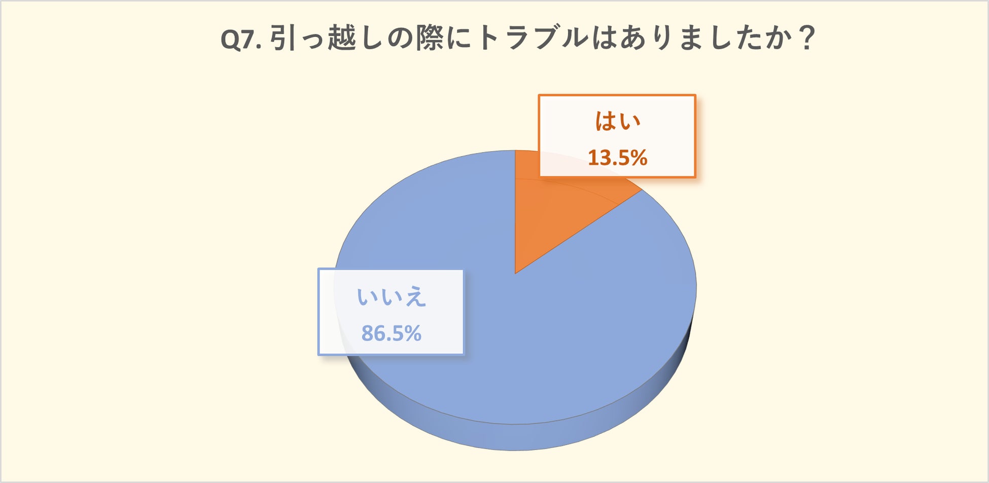 最後に「引っ越し専門業者へと依頼」した方へ対して、トラブルの有無と実際のトラブル事例をお伺いしました。