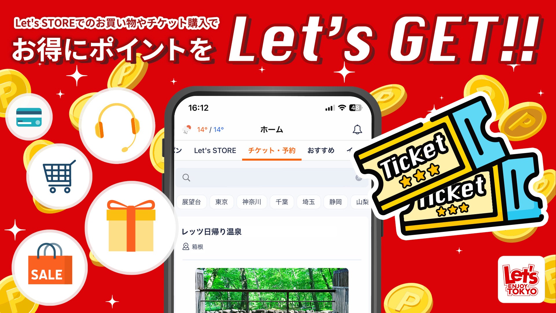 ポイントは、レッツエンジョイ東京に会員登録(無料)をして、サイトやアプリ内でのチケット購入やLet’s STOREの商品を購入すると、獲得することができます。また、誕生日月にポイントプレゼントなど、さまざまな特典をご用意しています。獲得したポイントは、イベントやレジャー施設、リラクゼーション、グルメなど500種類以上のチケットや予約、商品購入で使用することができます。