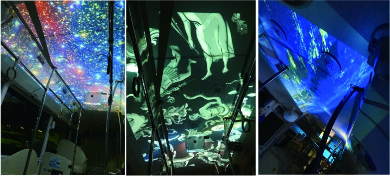 企画内容:乗れると宇宙一幸福⁉な路線バス 車内にプロジェクターで星空を映し出し癒しの空間を演出します。