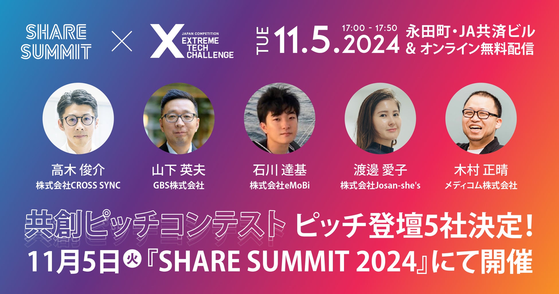 2024年11月5日開催、『SHARE SUMMIT 共創ピッチコンテスト2024』のピッチ登壇企業が決定!