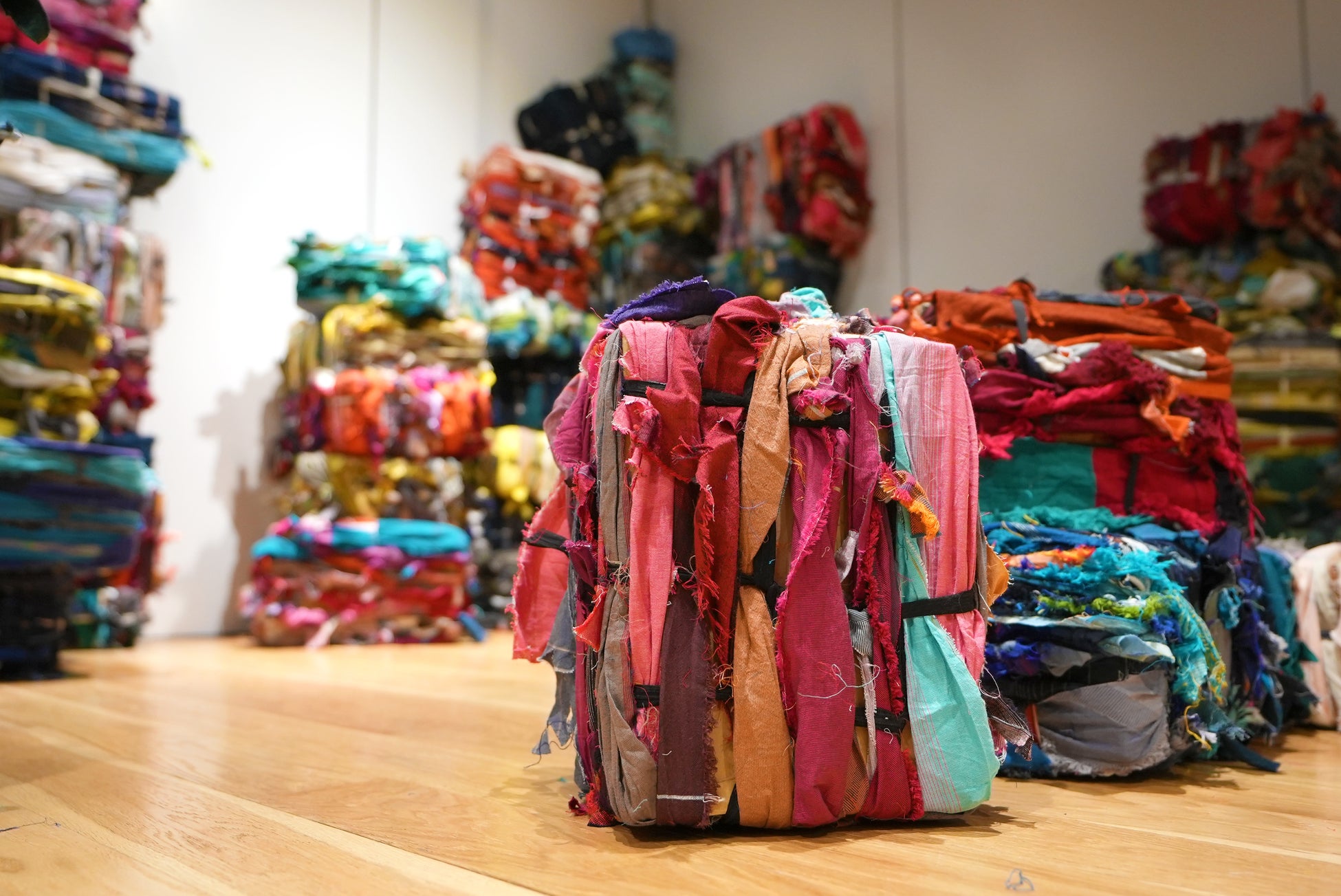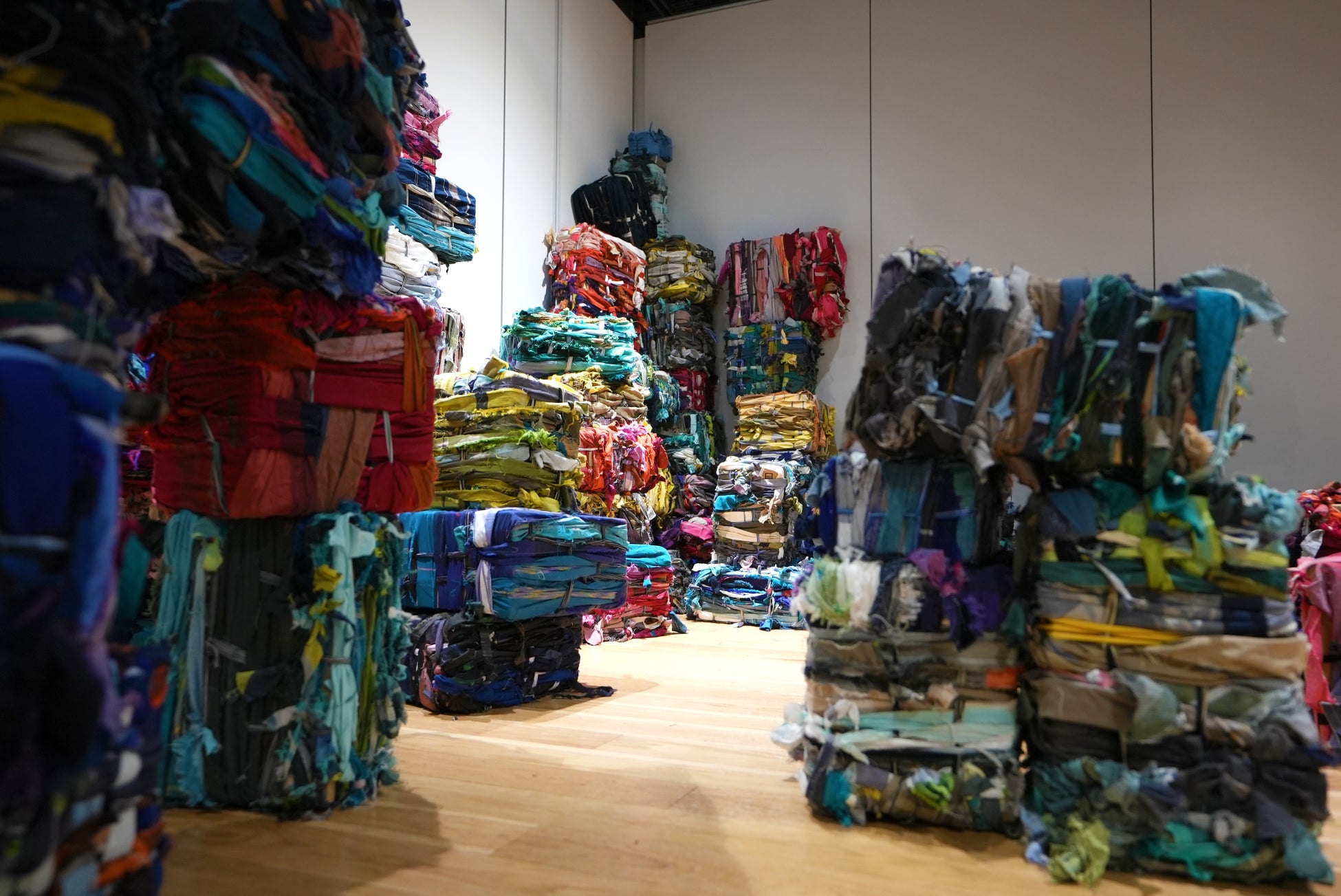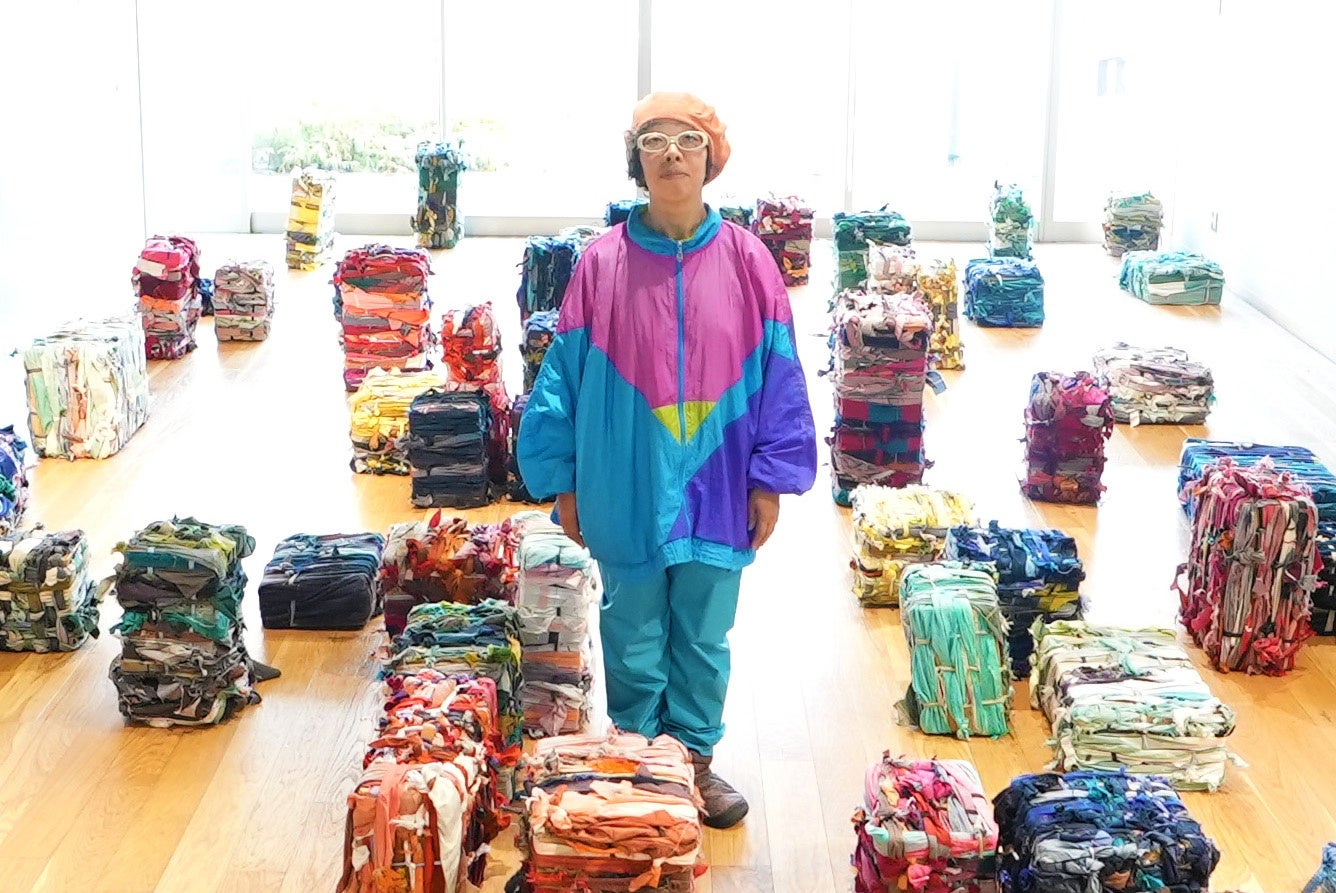 その後、兵庫県立美術館でアートとして展示され、tamaki niime shop & labはじめ、各所で巡回展示予定です。また、どれくらいで土に還るか試みる実験、あるいは、解体して分別し、ハギレを糸に戻し、あらたな作品をつくるなど、出展を終えてからも、チャレンジをつづけていきます。