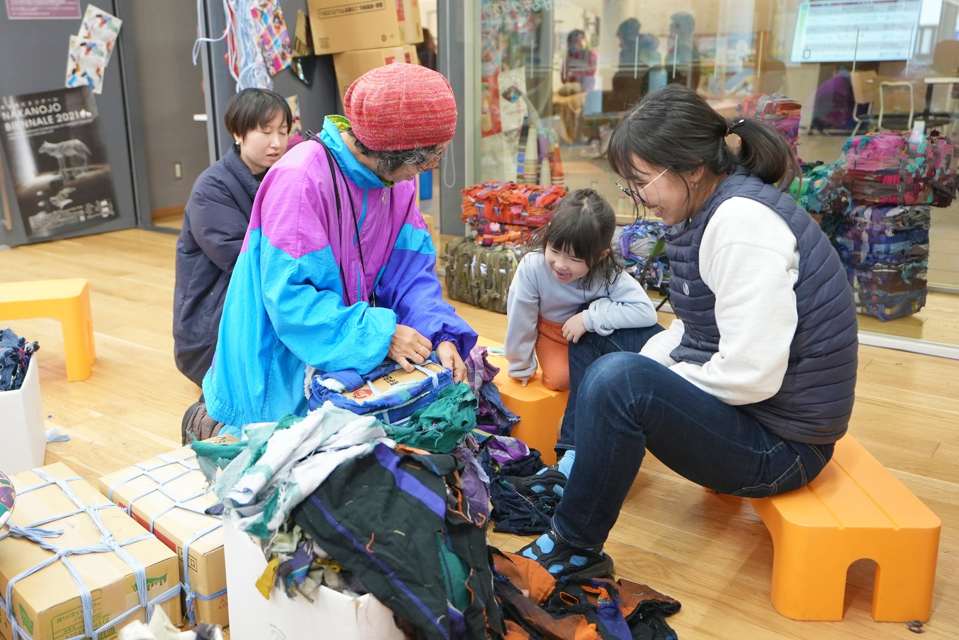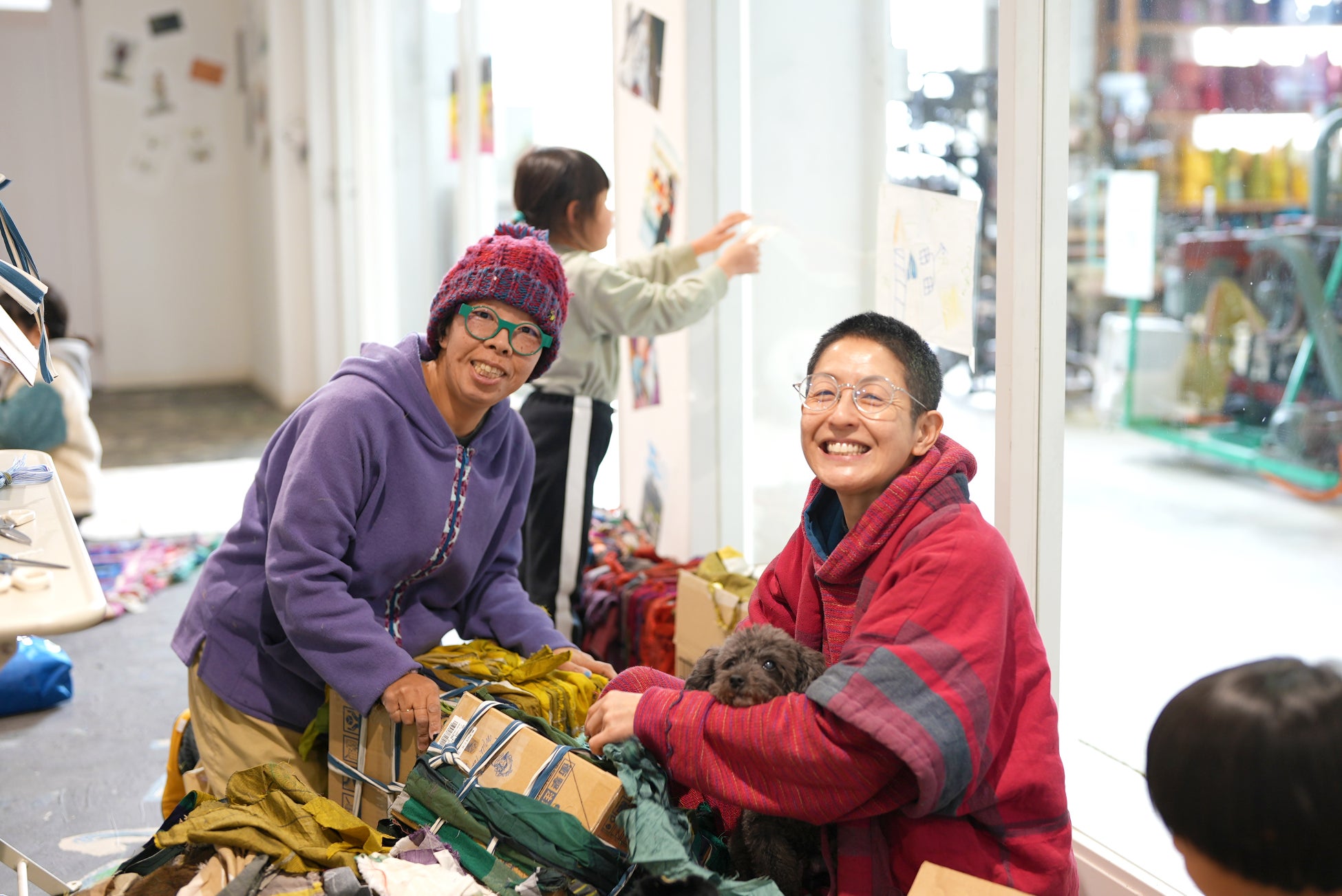 tamaki niimeの拠点である、兵庫県西脇市出身アーティスト・AYUMI ADACHIとコラボレーションによるワークショップでは、ハギレとダンボールを使い、いらなくなったものをアートに生まれ変わらせます。