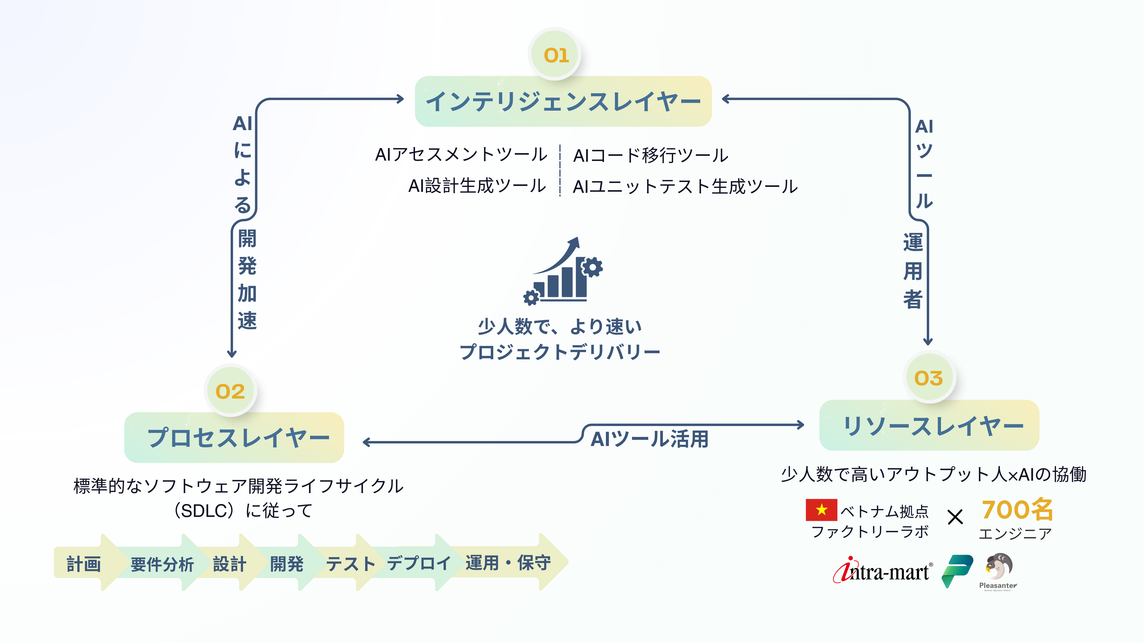 新たな成長フェーズにおいて、HBLABはレガシー移行分野で培ってきた強みに加え、PleasanterやIntra-martをはじめとするローコードベンダーとの戦略的パートナーシップを活用し、AIとローコードを融合した大規模プロジェクトの量産モデルを導入いたしました。2026年4月より本格的なサービス提供を開始する予定です。