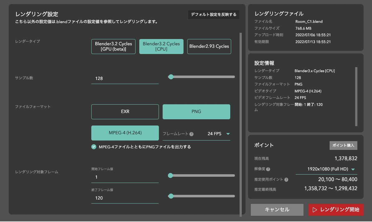 ●面倒な初期設定不要、ブラウザからファイルをアップロードするだけでレンダリング開始
