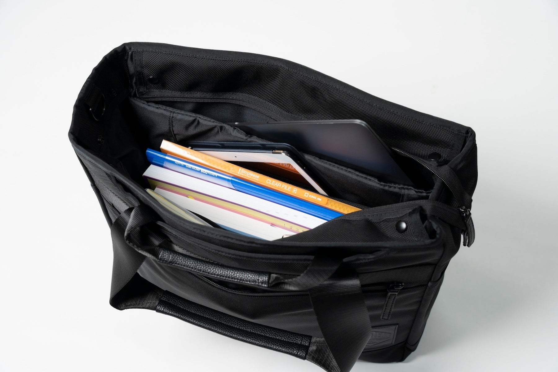 本製品は、トートバッグのゆとりある収納力とビジネスバッグの整理整頓しやすさを融合し、自立する設計で多様なビジネスシーンに対応することが特徴です。