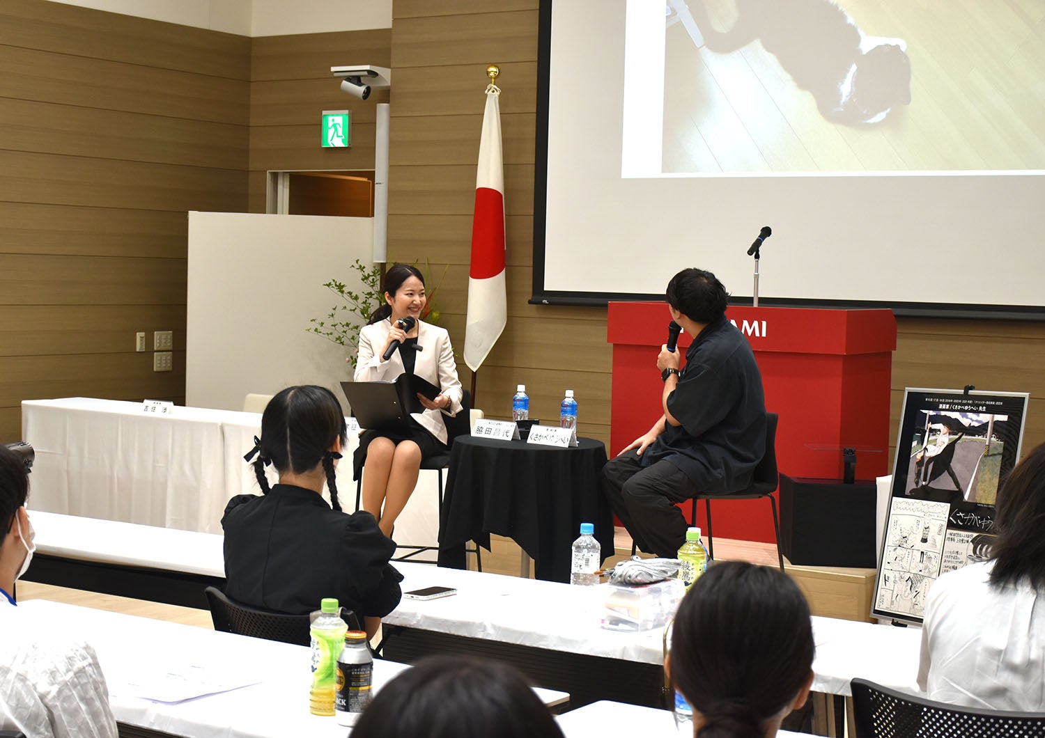 また、この日、2018・2020・2021年度「クリエイター育成事業」認定者で、「白山と三田さん」(週刊少年サンデー)を始め、数々の個性的な漫画を発表されている くさかべゆうへい先生が来場し、特別インタビューが行われました。