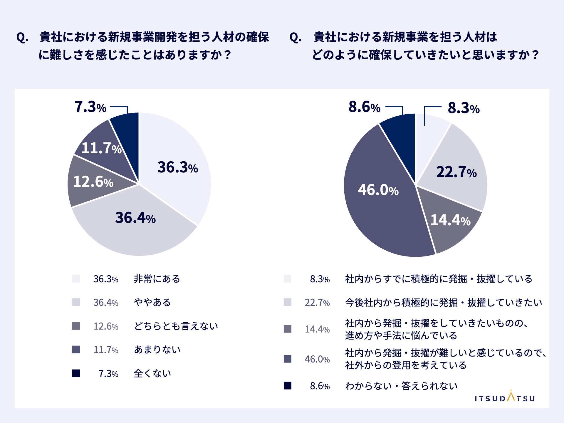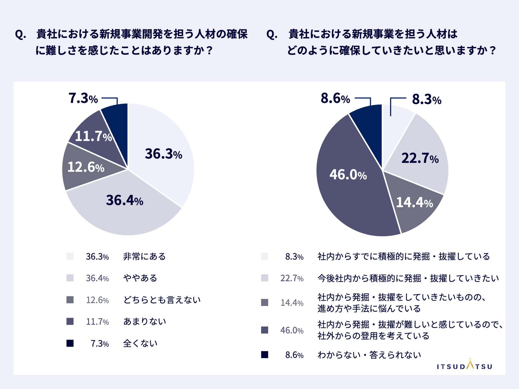 ・従業員数5000名以上の大手企業の30%以上が、「新規事業をリードする人材」を社内で発掘・抜擢をしていきたいが、発掘・抜擢の対象者に自信が持てず、効果的な進め方について模索をしている。