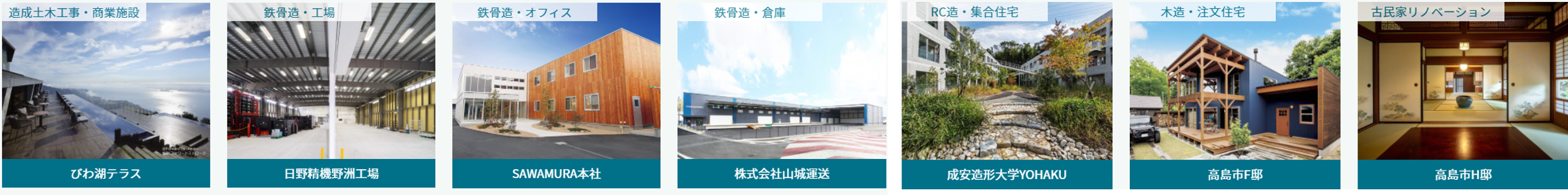 株式会社澤村(SAWAMURA)は、滋賀・京都・福井エリアを中心に、新築注文住宅・リノベーションからオフィス・店舗・工場・公共施設の建築・土木にいたるまで、ワンストップで課題を解決する1950年創業の総合建設会社です。暮らす場としての家づくりと、働く場としてのオフィス・工場づくりを手掛け、地域で生きることをよりゆたかにするきっかけを創造しています。