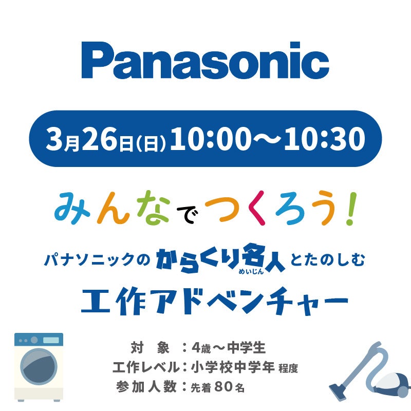 未来のものづくりエンジニアを育てよう!『みんなでつくろう!パナソニックのからくり名人とたのしむ工作アドベンチャー』が3月26日(日)に開催決定!