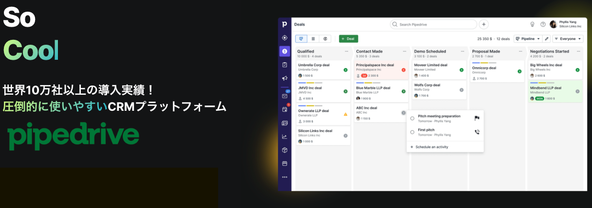 CRMプラットフォーム「Pipedrive」:https://www.pipedrive.merinc.co.jp/