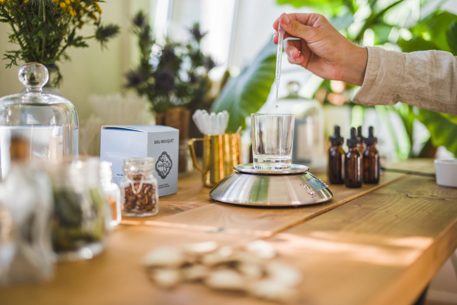 長年にわたる研究とテストを経て、AMOLNの特徴的な香り、ユニークなマットブルーの表面、単色のブルーのワックス、そしてエコロジカルな最終製品にたどり着きました。手作りの12段階の製造工程は、1つのキャンドルに2週間以上を費やします。