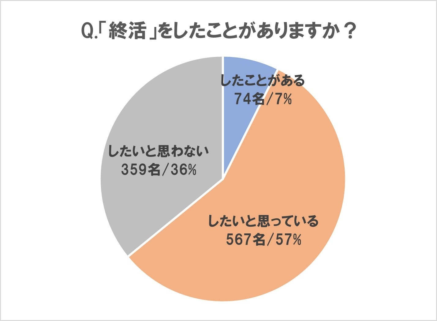 ■「終活をしたいと思っている」人は57%と過半数を占めており、今後、「終活」を実践する人の