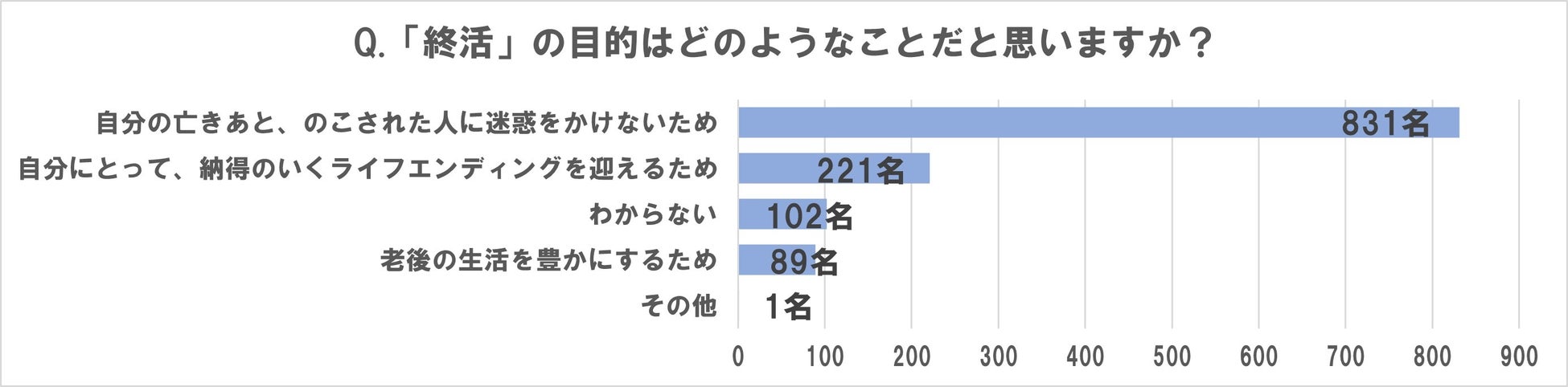 | 「終活」の目的を「のこされた人に迷惑をかけないため」と回答した人が8割以上 「自分のために」と考える人は少数派 |