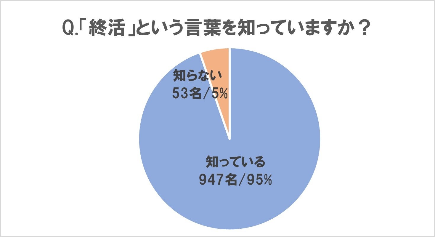 | 「終活」の認知度は95%と非常に高く、ほとんどの人がその言葉を知っている |