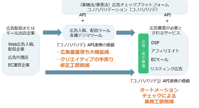 『コノハ』の広告表現チェック機能を各種マーケティングツール、広告監修が必要なサービスと連携できるようAPIを開発しました。