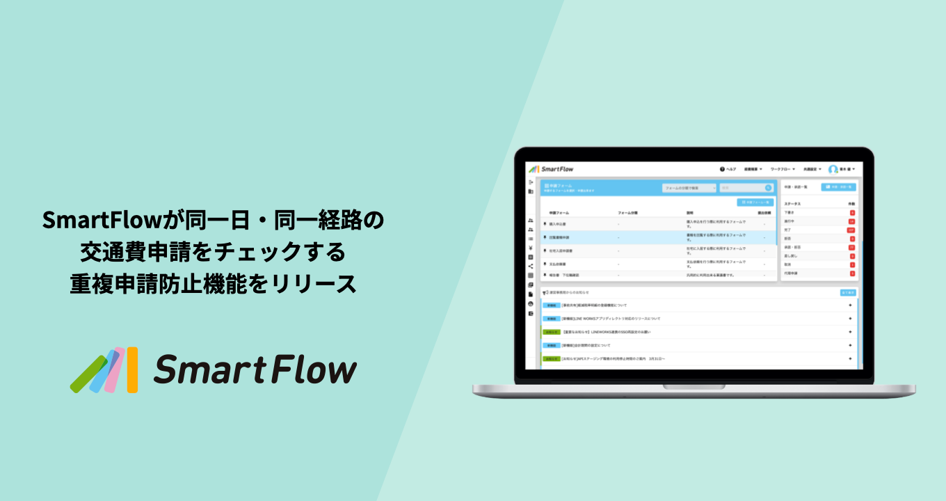 SmartFlowが同一日・同一経路の交通費申請をチェックする重複申請防止機能をリリース