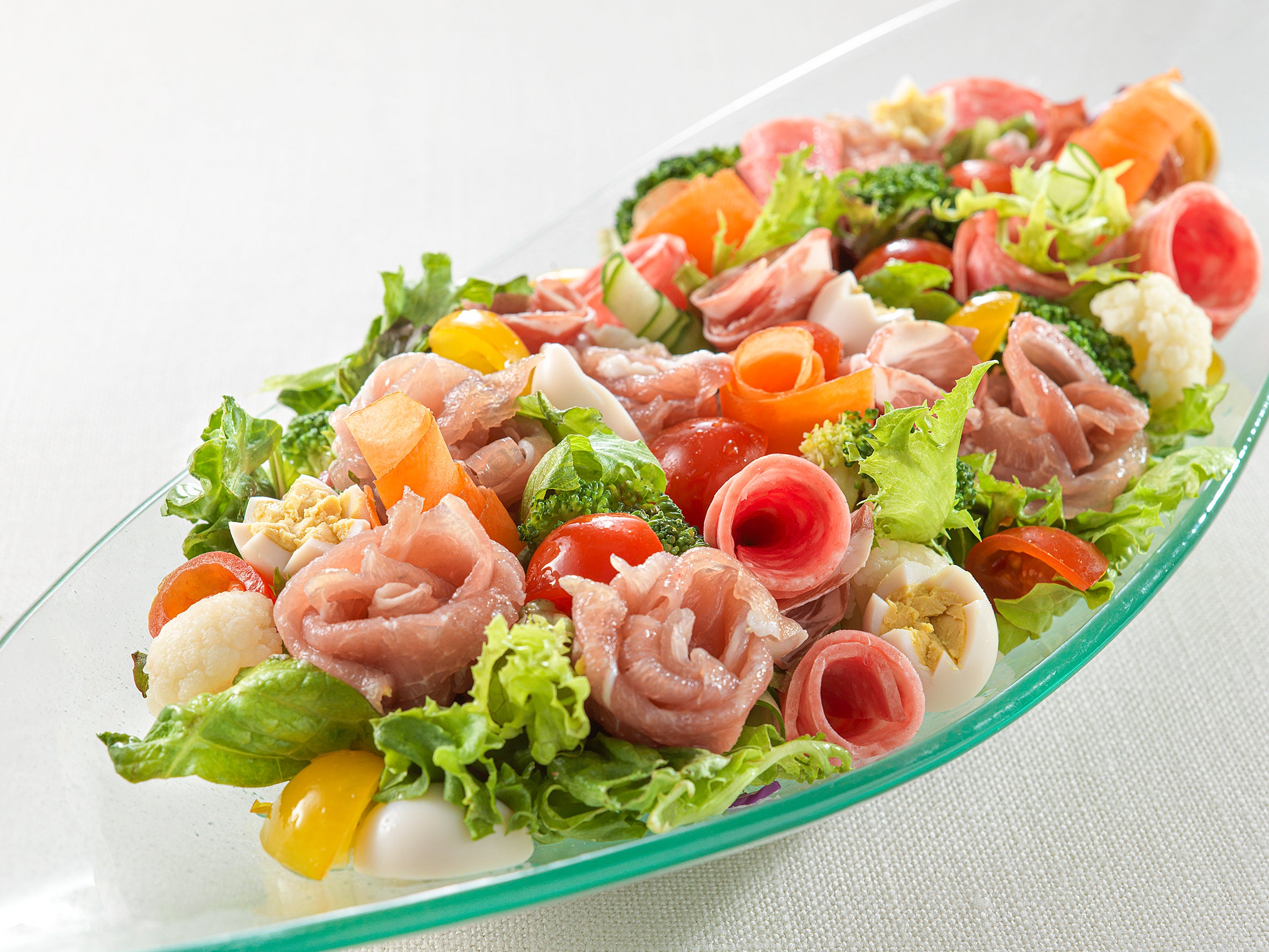 手羽先と大根の炊き合わせ/生ハムブーケサラダ/ローストビーフ マウンテンサラダ/若鶏の鍬焼き風 山椒の香り/ポークと芹の煮込み ポテト餡かけ/大豆ミートと旬野菜のソテー黒胡椒風味/大阪産豚肉なにわポークのとんぺい焼き/ガーリック香る季節野菜ロースト ローズマリー風味/週替わり麺 など料理 全28品