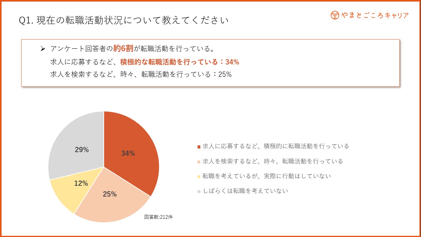 インバウンド専門の求人サイト「やまとごころキャリア」を運営する、株式会社やまとごころキャリア(本社:東京都千代田区、代表取締役:磯部武秀)は、2021年12月9日~16日に、当サイト登録会員向けに「転職活動状況の調査」を実施いたしましたので、その結果を公表いたします。