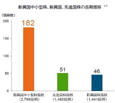 特に中小型株市場はテンバガー(10倍株)の輩出数では群を抜いています。世界経済における新興国の存在感は高まっていますが、世界の株式市場では新興国の占める割合は低水準にとどまっており、今後の拡大が期待されています。
