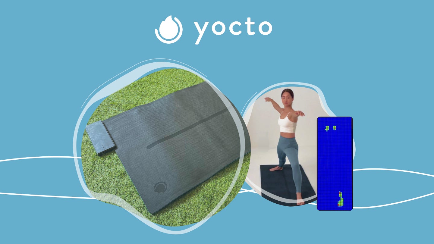 yoctoMatは世界初*のIoTヨガマットです。yoctoMatには織物製の重圧センサーが搭載されており、そのセンシングデータを専用アプリと連携させることで、プレイヤーの手や足の位置、重心を可視化することができます。また将来的にはセンサーデータだけでなくカメラ画像データをAI解析することで、ヨガのポージングを改善することもできるようになります。さらに yoctoMatから取得するデータを用いることでオンラインでのヨガレッスンをよりパーソナルなものにし、ウェルビーイングへと導きます。