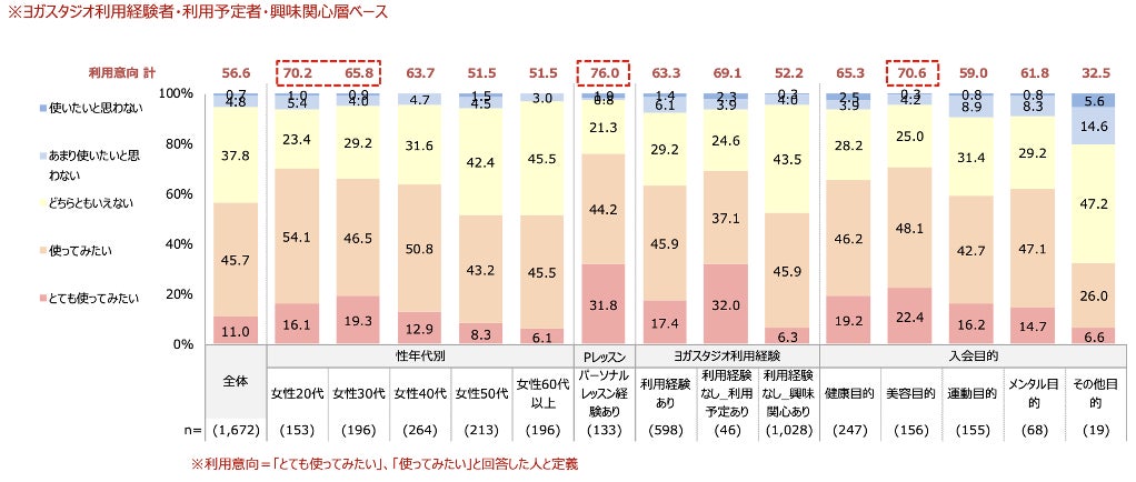 - 調査結果:ヨガは年代ごとに変化する美容と健康に対するニーズに応えると認識されており、またそのニーズに対してyoctoMatは高い利用意向がある