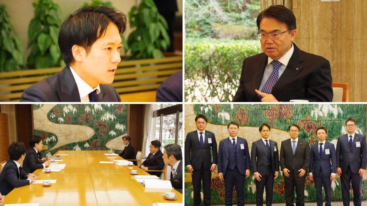 2025年2月20日(木)公益社団法人名古屋青年会議所の平岩敏明理事長を始めとする正副団一同が、大村知事のもとへ表敬訪問。JCI世界会議の国際BID獲得に向けて協議を実施。