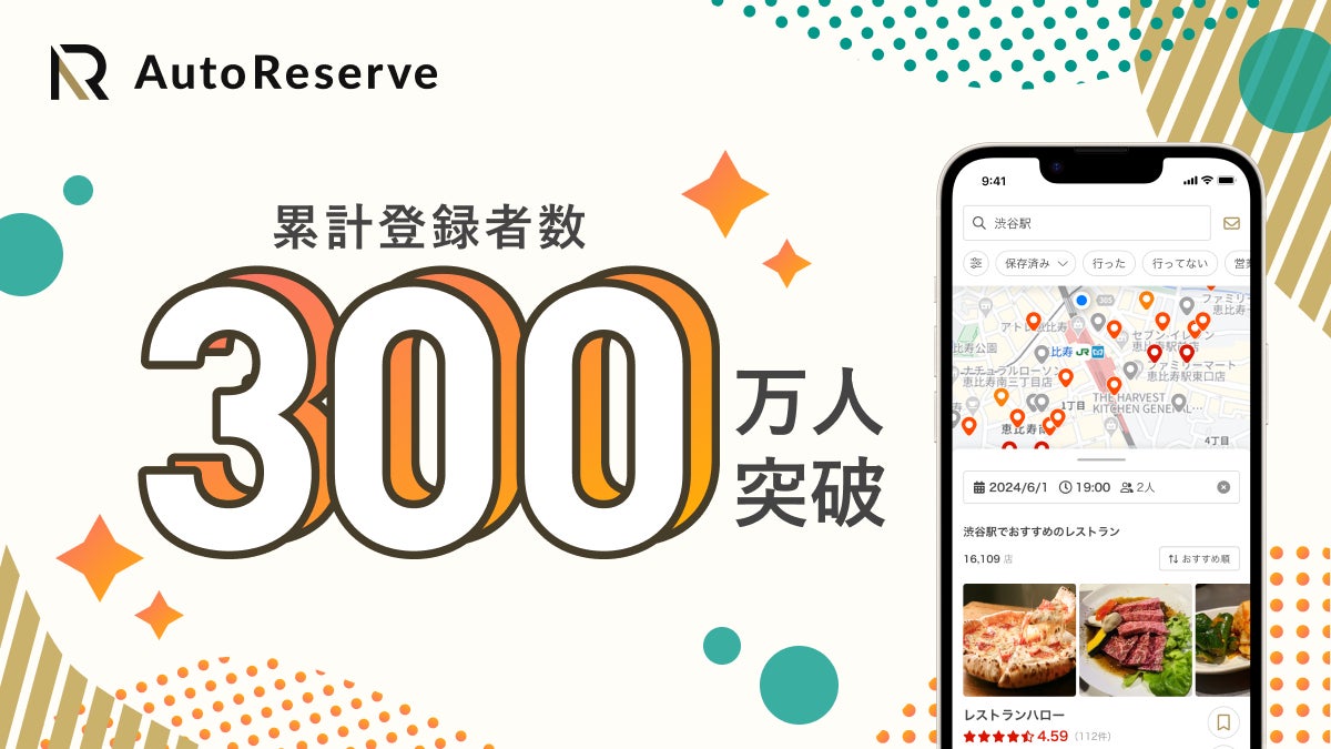 AIによるレストラン予約サービス「AutoReserve」を運営する株式会社ハロー(本社:東京都渋谷区、代表取締役:播口 友紀)は、AutoReserveの累計登録者数が300万人を突破したことをお知らせいたします。