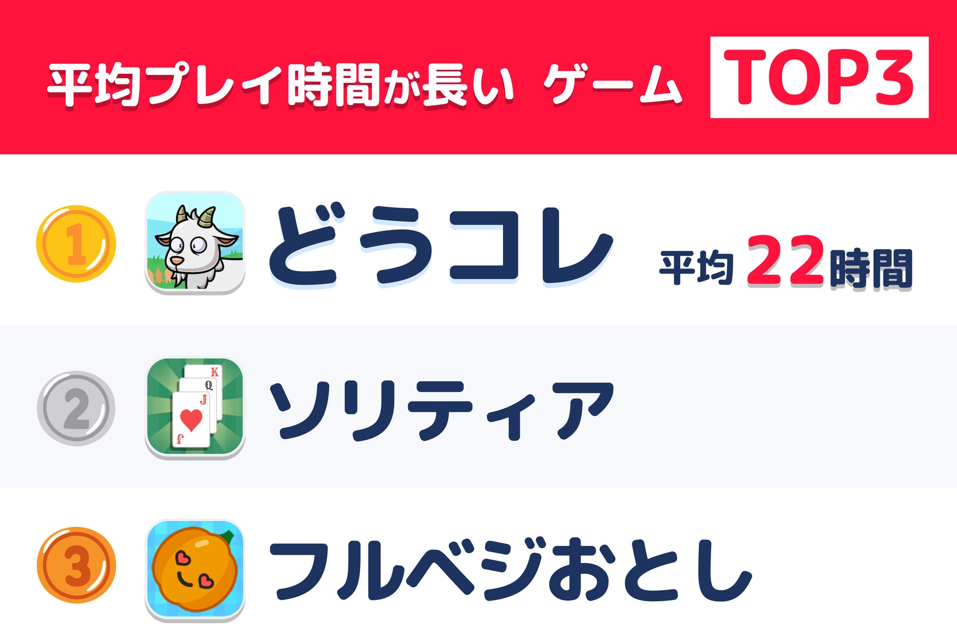 同じ絵柄を3つ揃えていくシンプルなゲームです。リリースから約半年でユーザー1人あたり平均プレイ時間は22時間を突破!ステージをクリアするごとにどうぶつがコレクションされていきます。