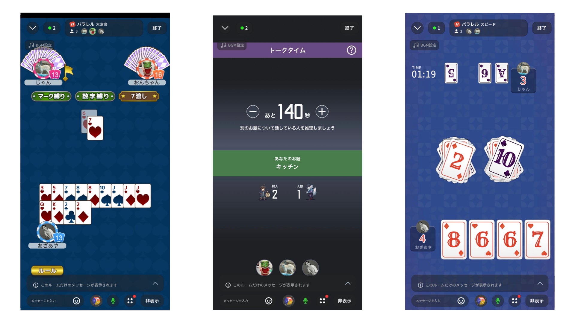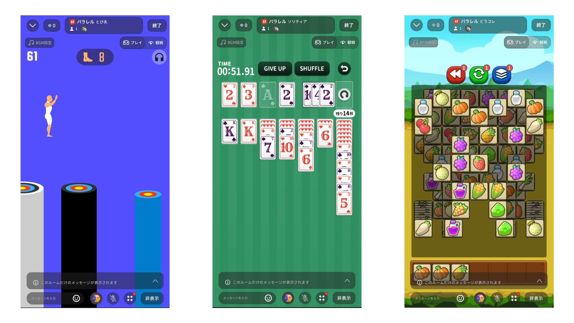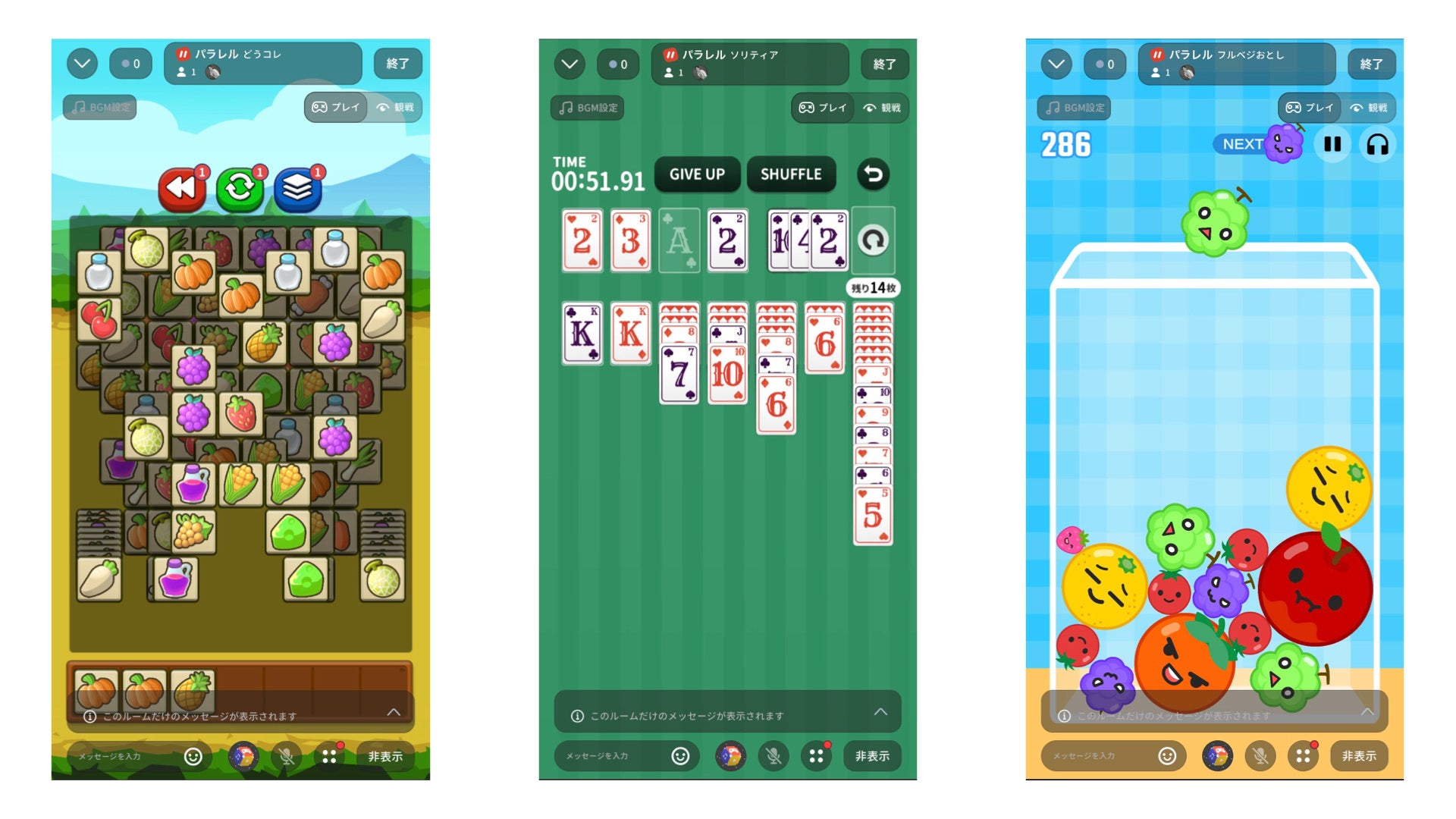 上記のようにパラレルで遊べるゲームは、”カジュアルゲーム”と呼ばれる、複雑な説明が不要で誰もが気軽に楽しめるゲームが大半を占めます。