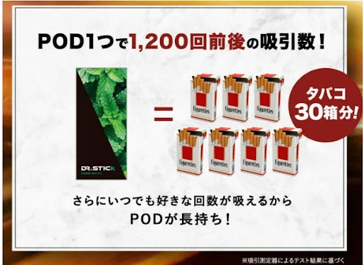 なんと、POD1箱でタバコ約30箱分の吸引回数を誇ります。