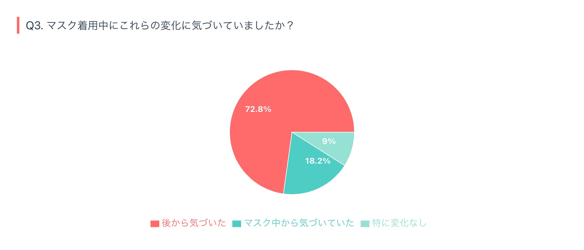 マスク着用時には気づかなかった肌の変化に、マスクを外してから後になって気づいたという経験について調査しました。