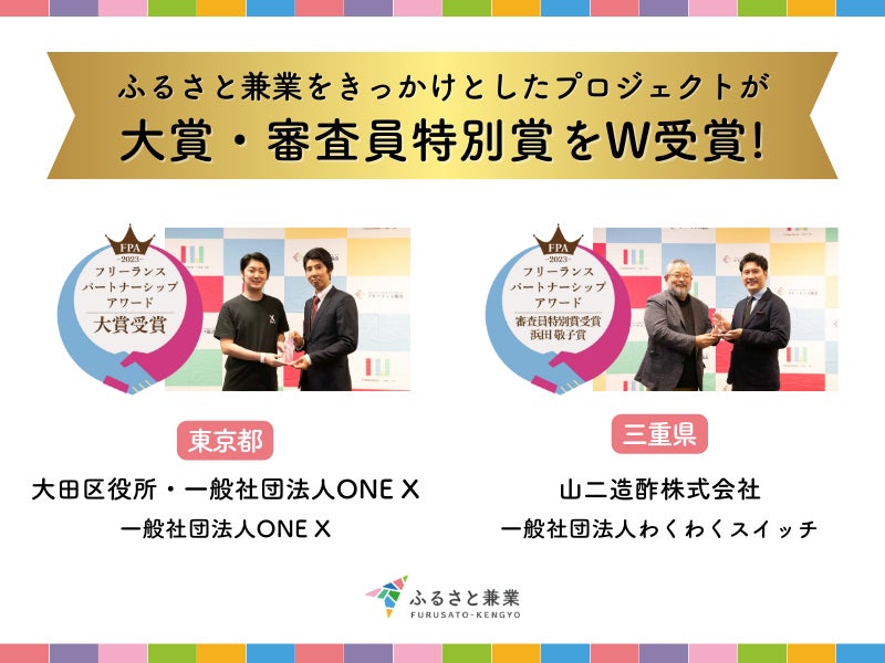 ふるさと兼業を活用した2つのプロジェクトが「フリーランスパートナーシップアワード2023」で「大賞」「審査員特別賞」を受賞