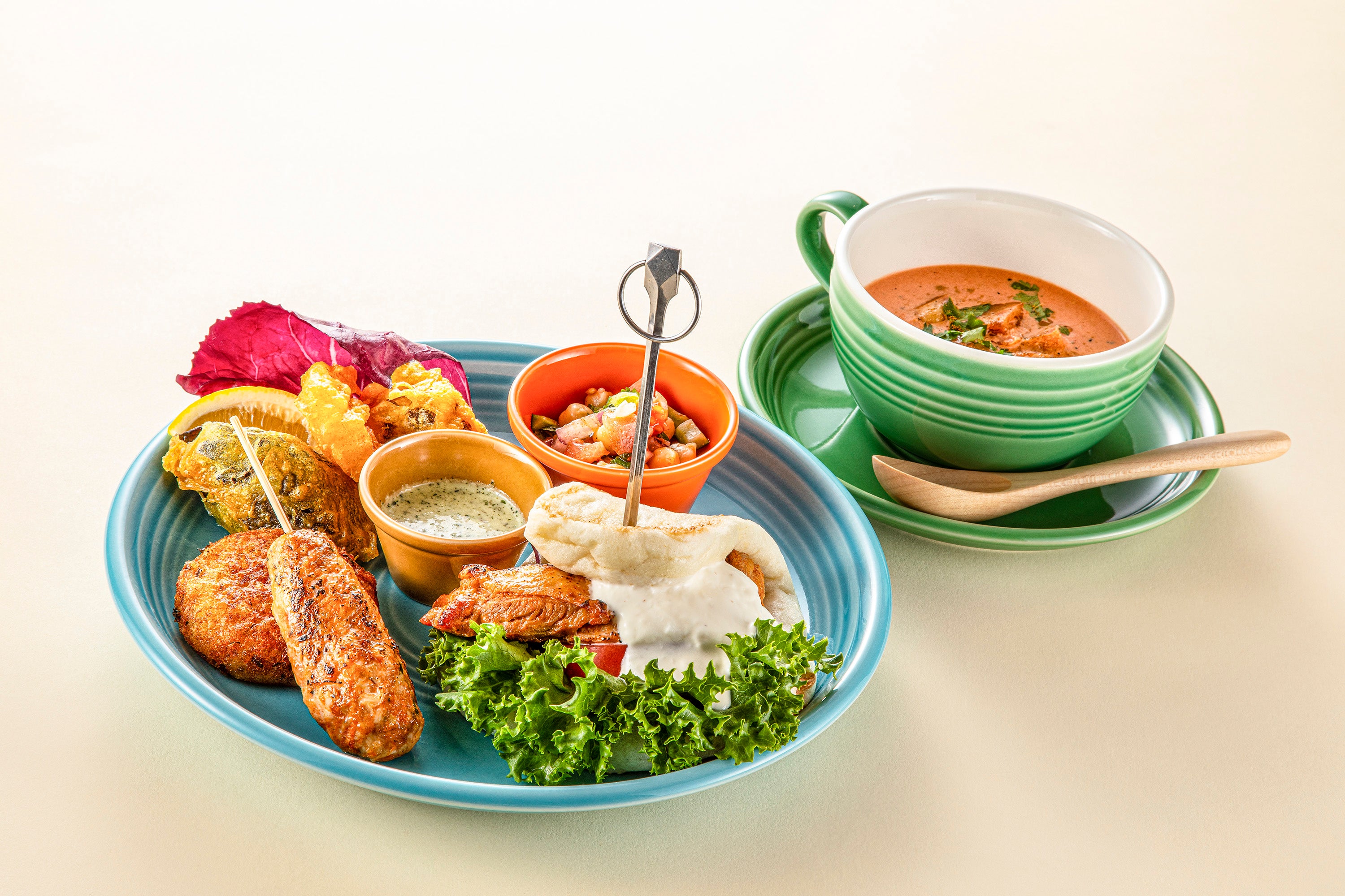 インドの家庭で親しまれている料理を日本人でも食べやすいようにアレンジしたワンプレートメニュー。インドでは定番のサラダ、チャナ・カチュンバルから、ナンをサンドして食べるチキンティッカ・ナンパーカーサンドまでボリューム満点です。
