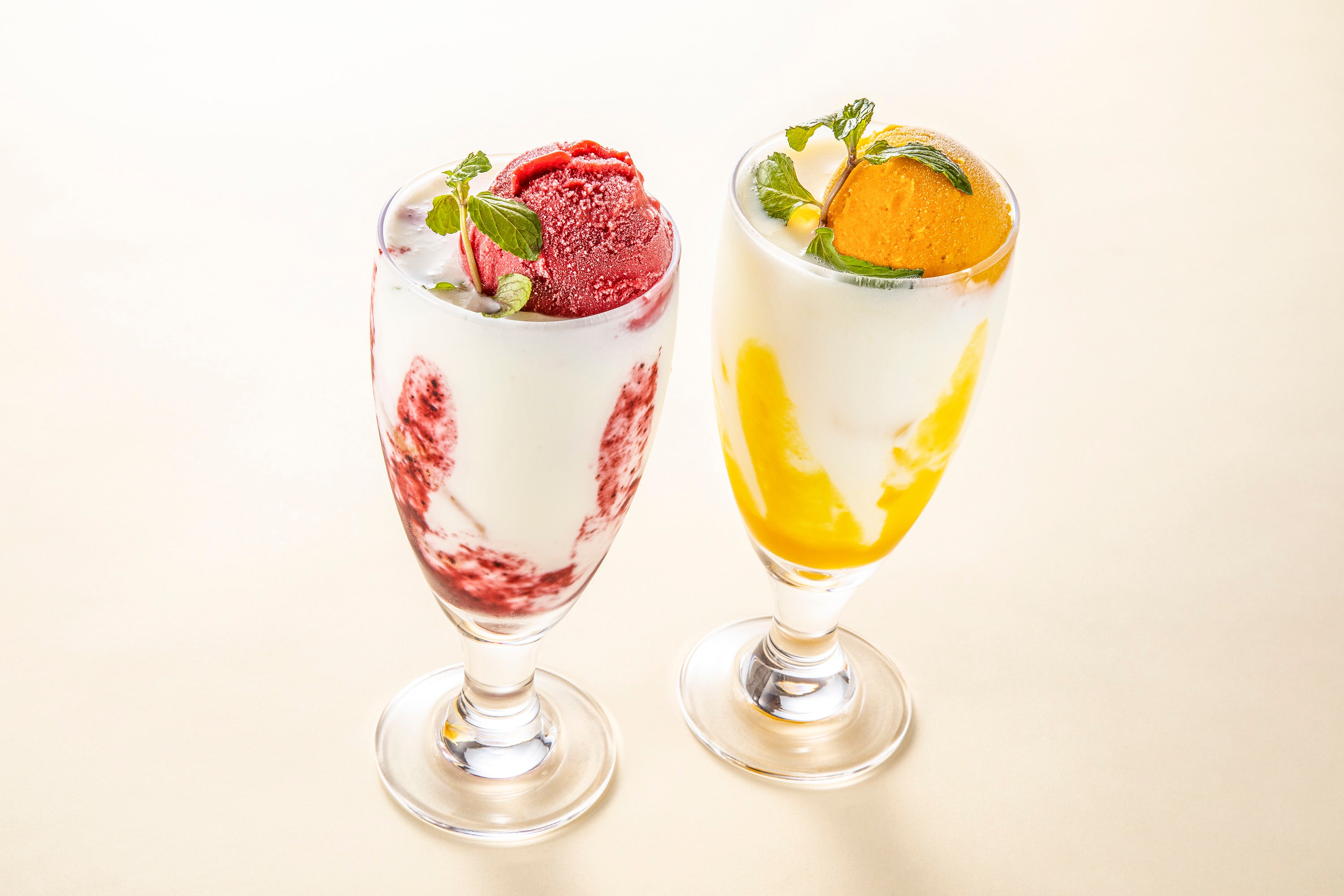 日本でも人気のラッシーに夏らしいジェラートのトッピングを加えたドリンクメニュー!フランボアーズ、マンゴーの2種類から選べて、見た目も味も贅沢な一品。ジェラートは果汁60%以上の濃厚な口当たりが楽しめる本格派で、暑い季節にぴったりのメニューです。