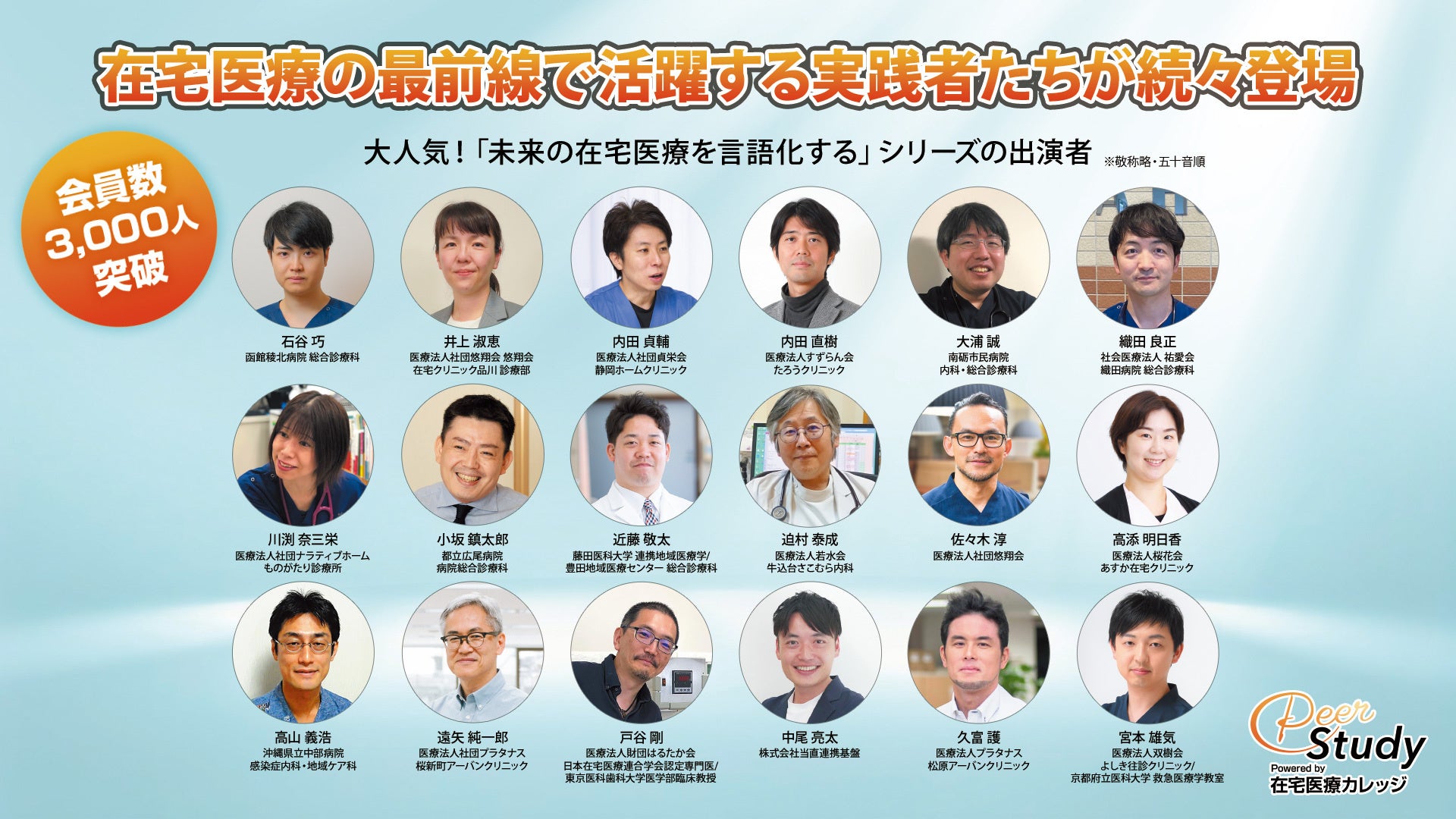 2023年11月に開設した在宅医療に関わる専門職を対象とした学びとつながりの動画サービス「Peer Study~在宅医療カレッジ~」は、この度1周年を迎え、登録者が3,000人を突破しました。