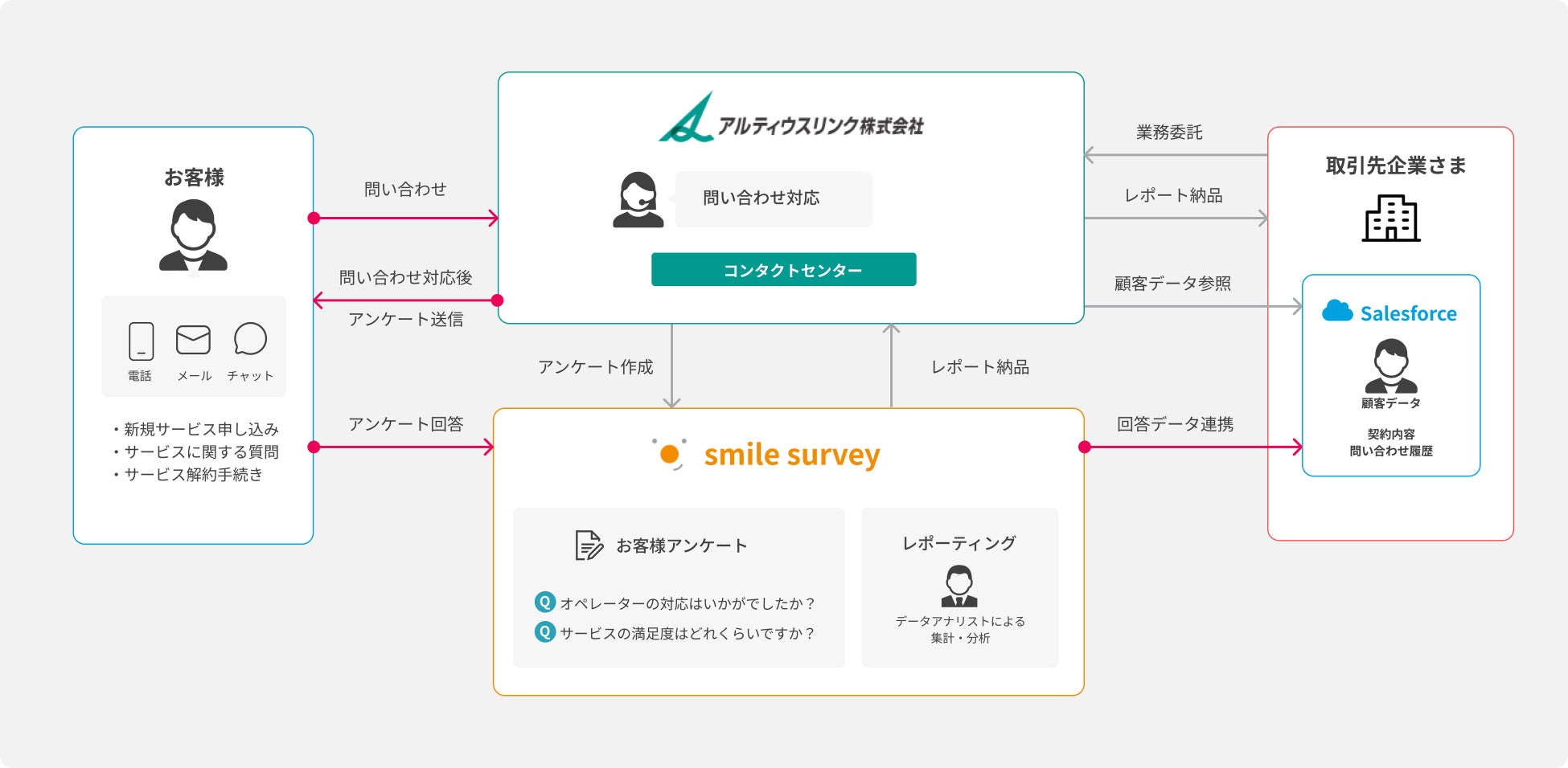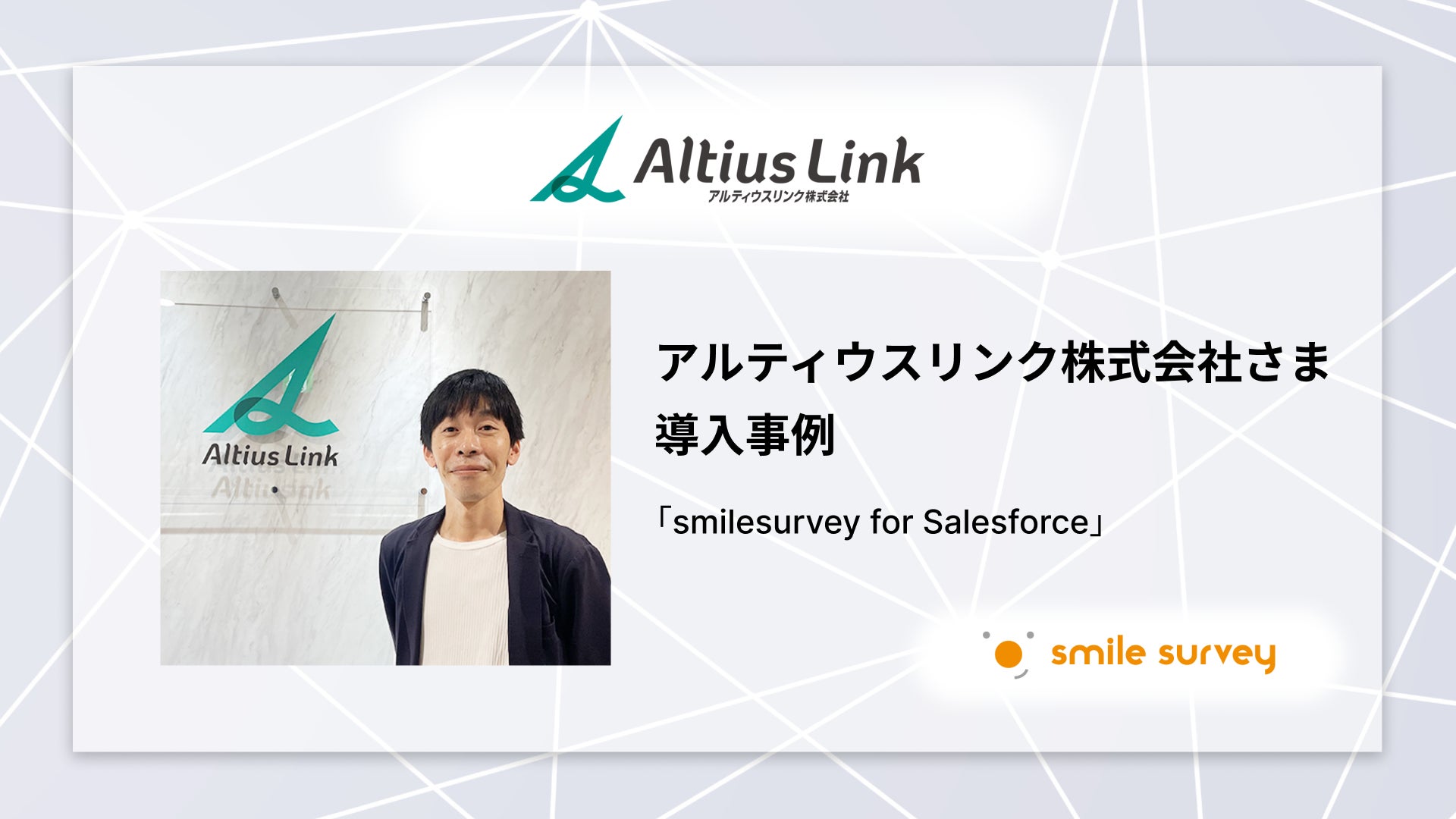 スマイルサーベイではSalesforceへの柔軟なデータ連携を強みとしており、アルティウスリンクさまの課題解決のため、「smilesurvey for Salesforce」を導入させていただくこととなりました。